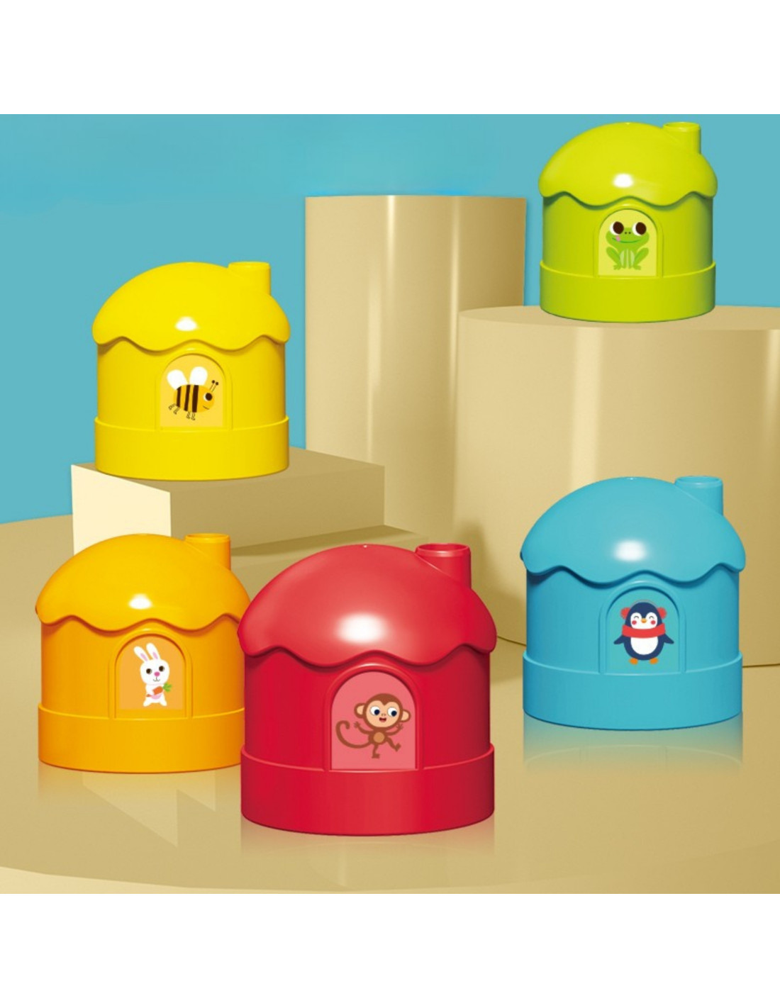 - - Includes 5 colorful containers/houses with cute animal stickers