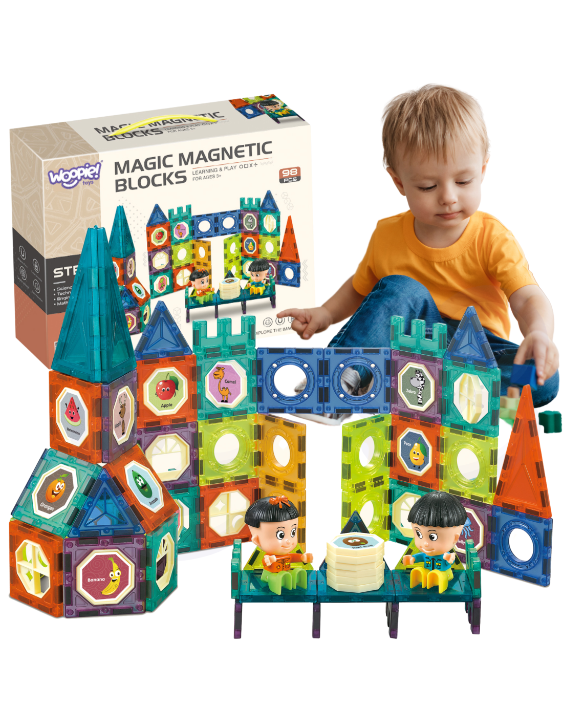 Magnetic blocks from the WOOPIE brand will captivate and fascinate your child. The blocks easily connect together , allowing you to create amazing structures, such as a castle . In addition to the blocks, stickers, and instructions, the set includes two child figurines . Building the structure itself will develop your child's logical thinking , imagination , and creativity , and will help them concentrate while creating. By arranging the blocks, your child learns shapes and colors and develops fine motor skills.