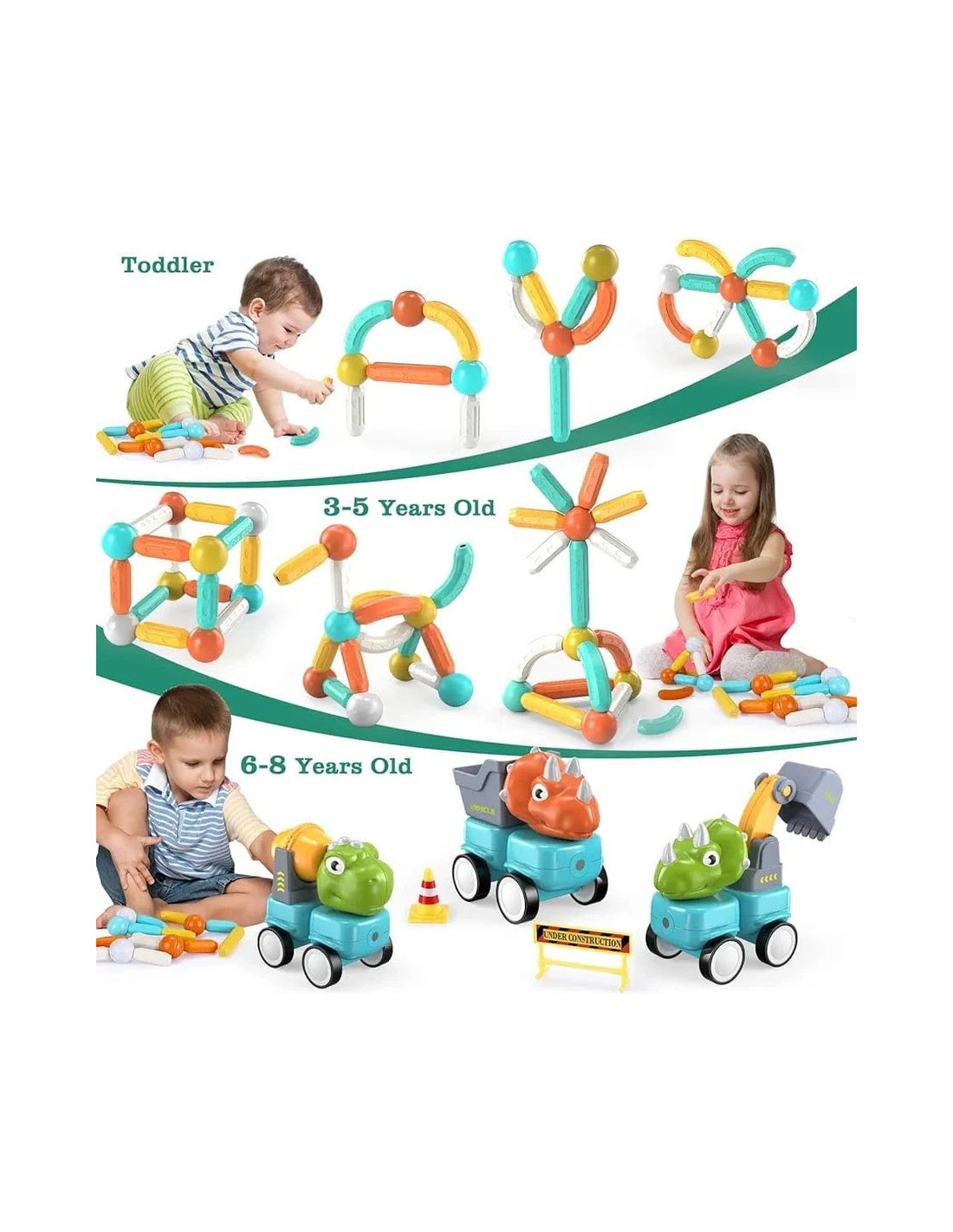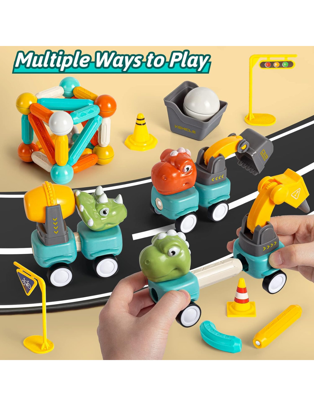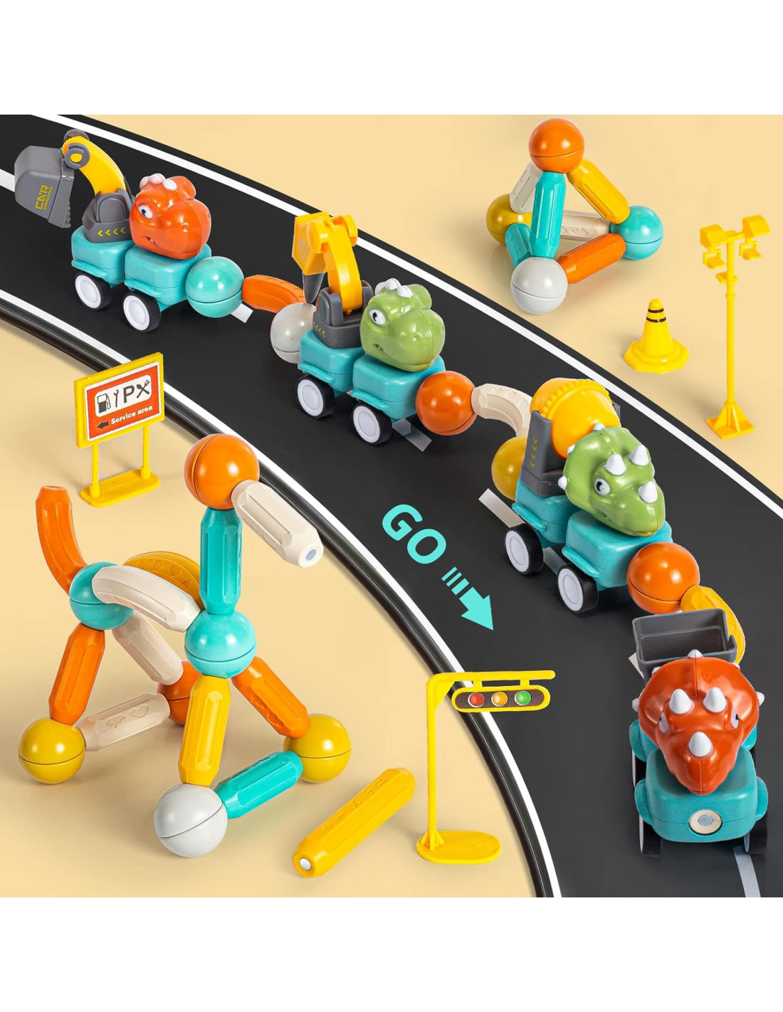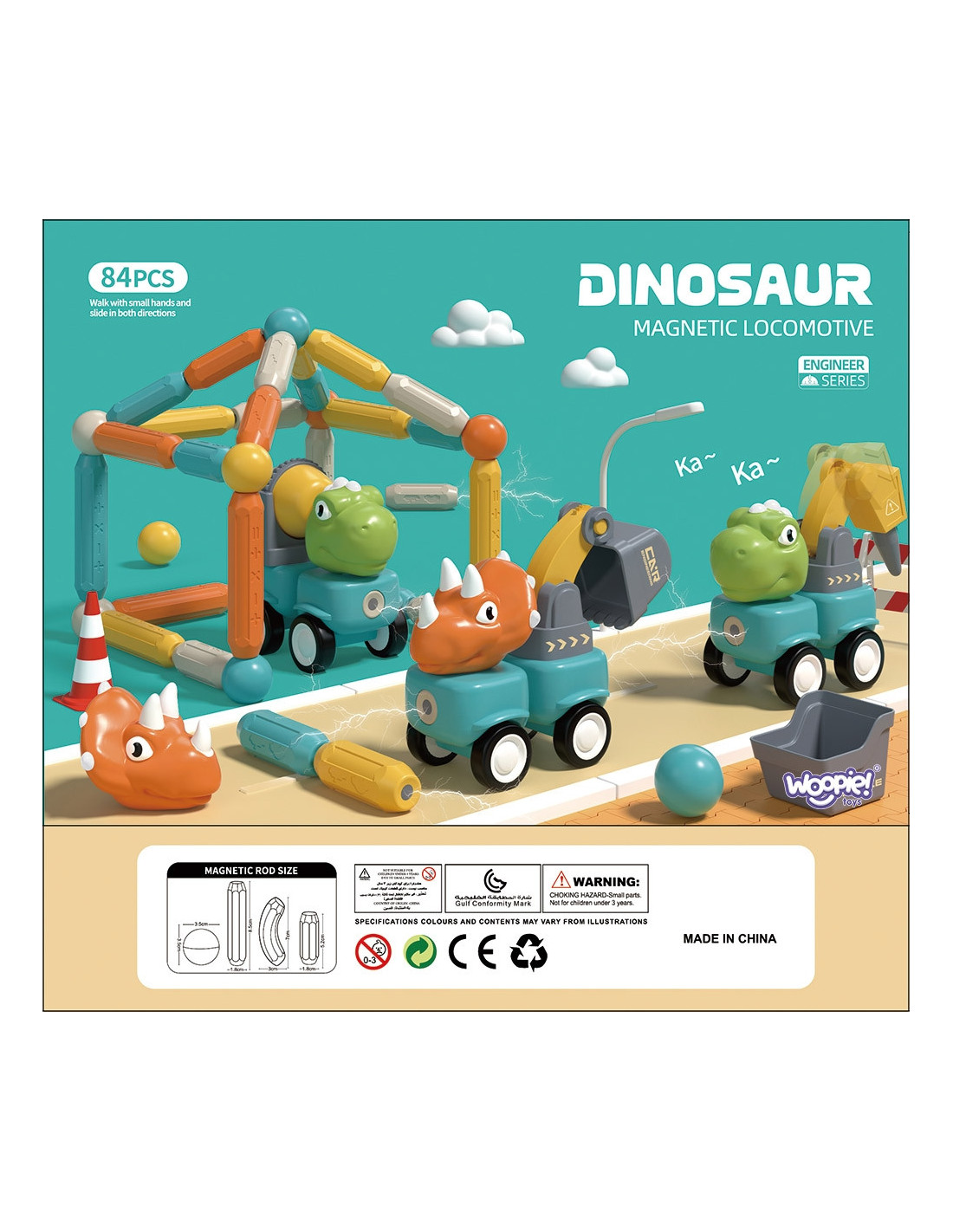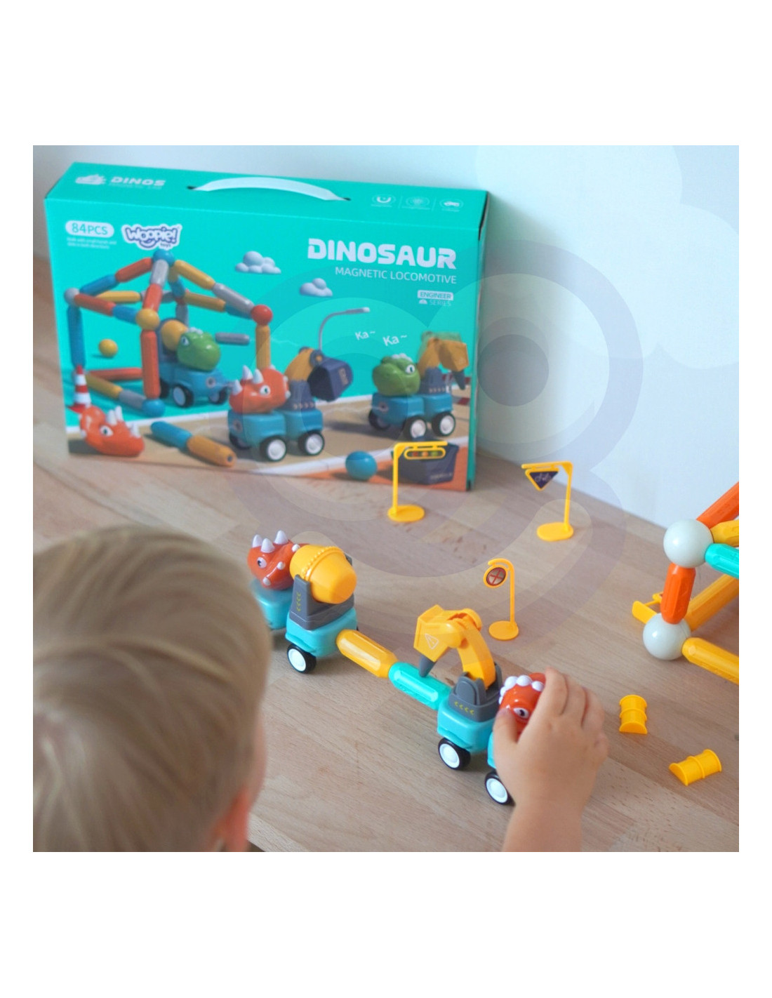 This set of magnetic blocks from WOOPIE is a great gift idea for a child! It's a creative and imaginative way to kill boredom. With them, you can create not only flat shapes but also 3D shapes and animals, and you can even teach your child to count by arranging numbers with them! The possibilities are virtually endless. Create a world from your own imagination, solve spatial puzzles, and develop! The set includes mini dinosaur cars that will diversify the fun and introduce your child to a new dimension of building structures. The set's components have built-in magnets, which allow for easy connection of the building blocks, so children will surely be able to assemble it. The vibrant colors and large size of the set will enrich the fun with new experiences.