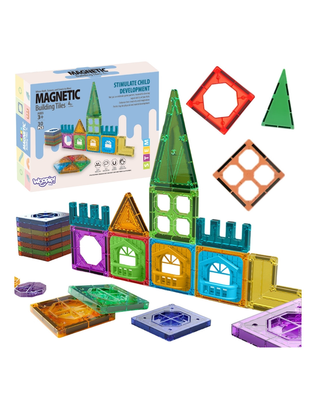 WOOPIE Magnetic Construction Blocks 3D Educational Set Castle 30 pcs.