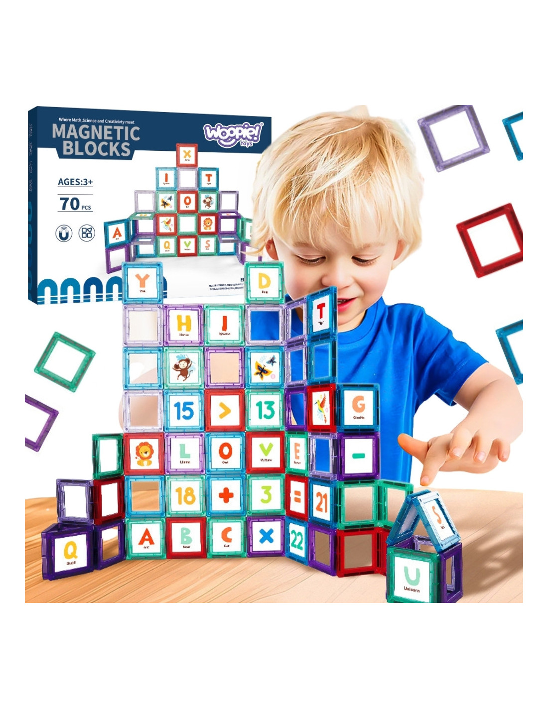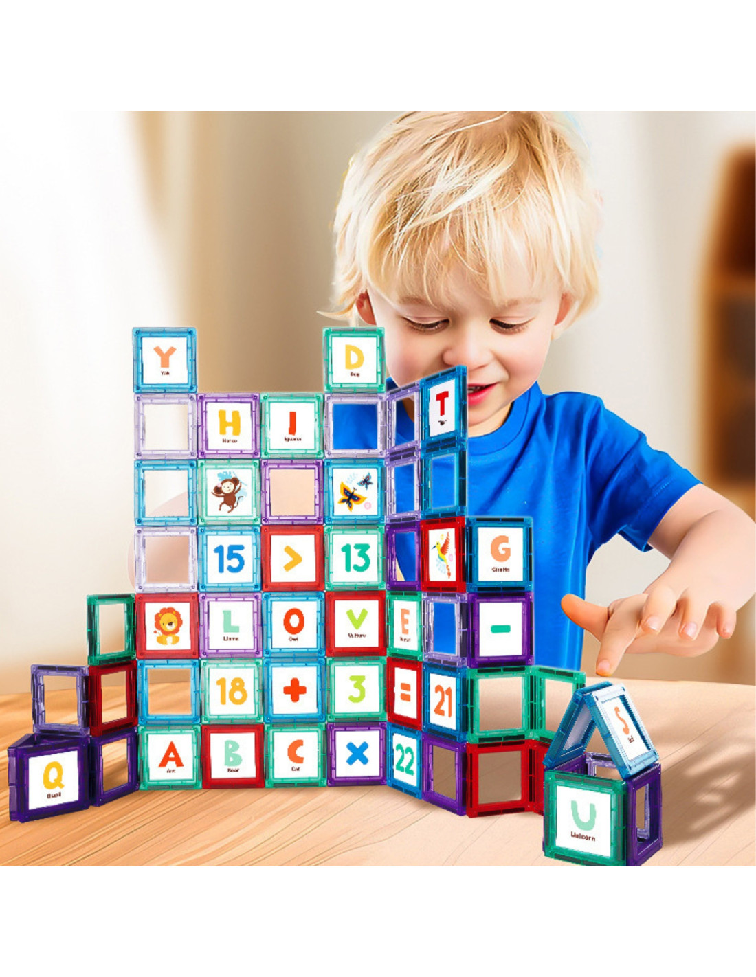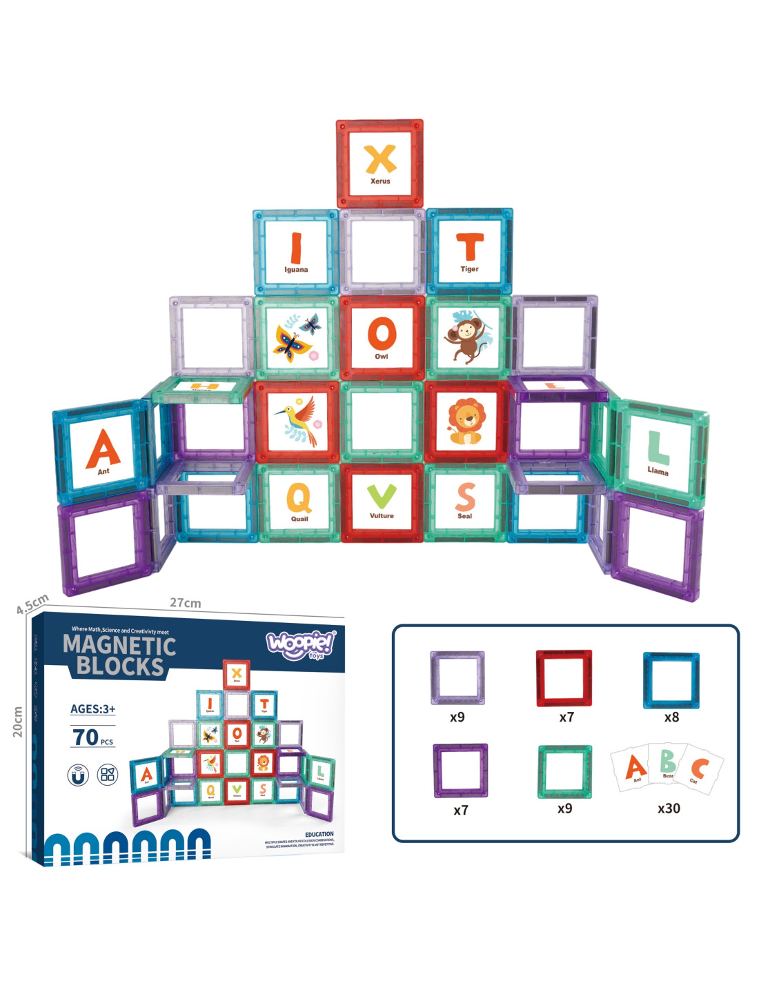 Magnetic educational blocks are a unique toy that opens up a world of learning and creativity for children. Solid, colorful pieces allow for easy construction of various structures, while developing imagination and manual skills. The set includes letter cards to support learning the alphabet during creative play. Strong magnetic connections allow for the construction of many types of structures and ensure stability and safety during play.