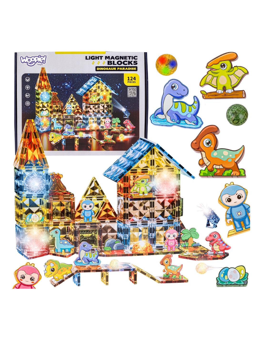 WOOPIE Magnetic Construction Blocks Glowing 3D Dinosaur Park 124pcs.