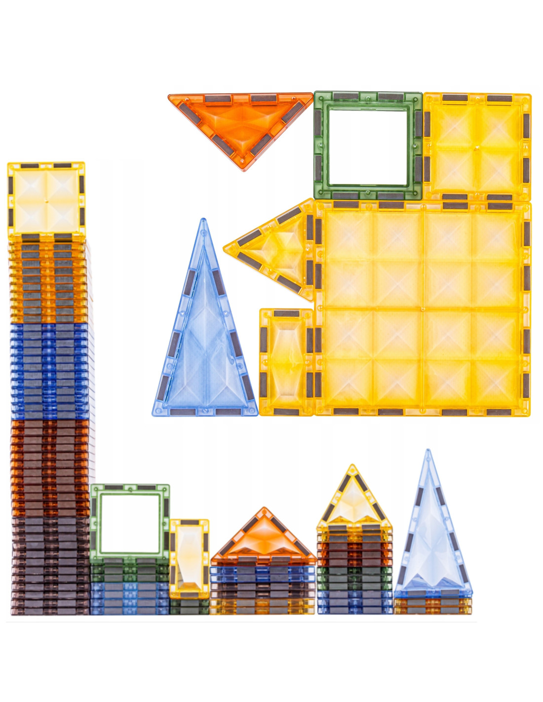 - - Magnetic blocks in various shapes (squares, triangles, windows, roofs)