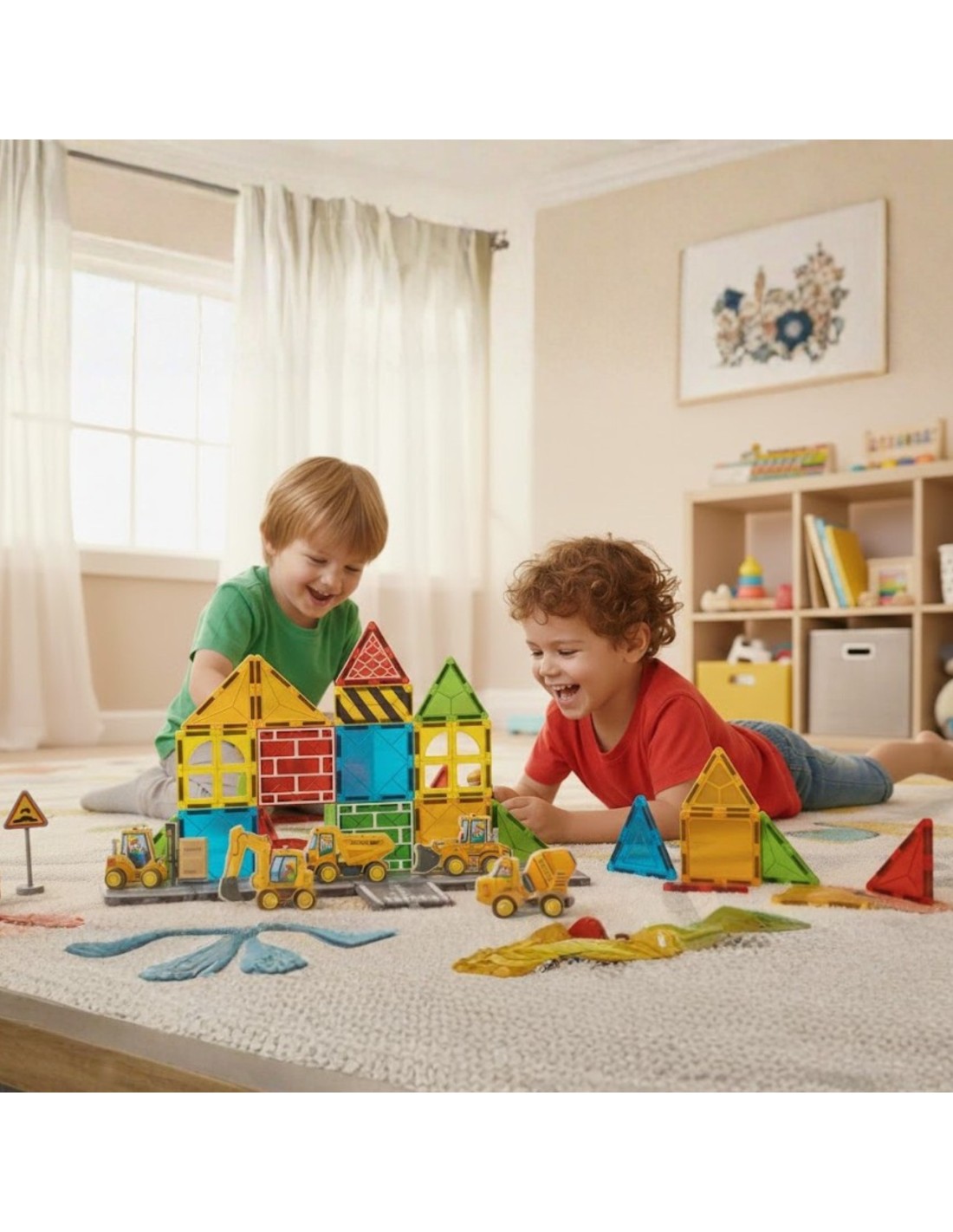 - - Construction set with magnetic blocks and construction vehicles