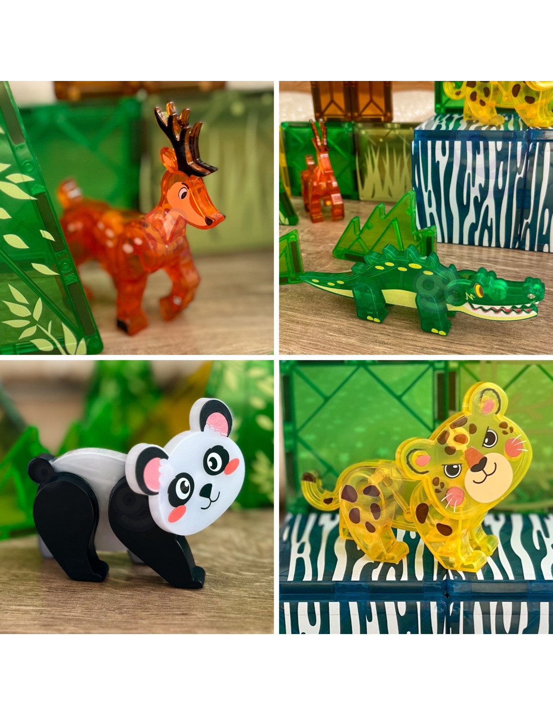 - - Set theme: rare animals (panda, leopard, deer, crocodile).