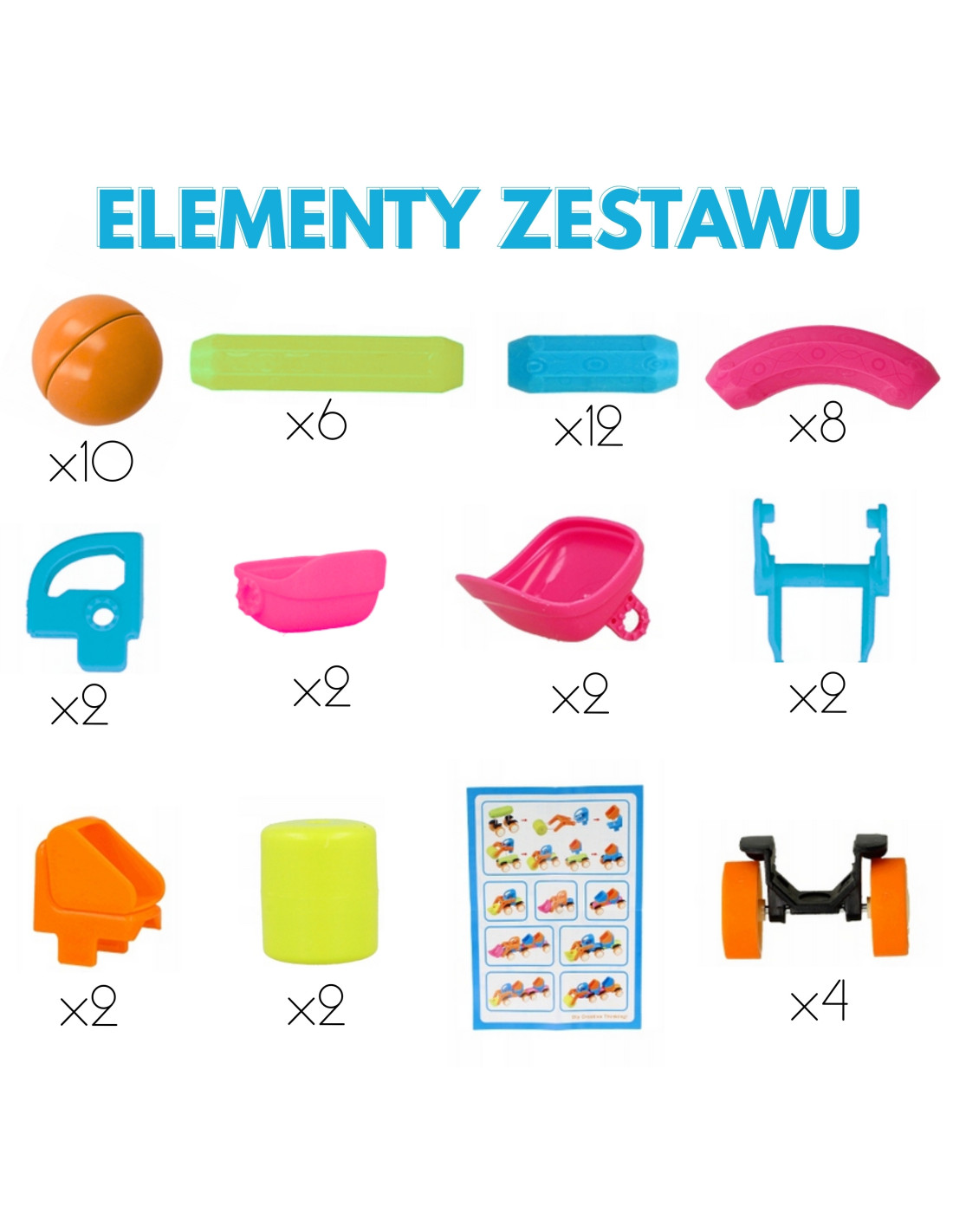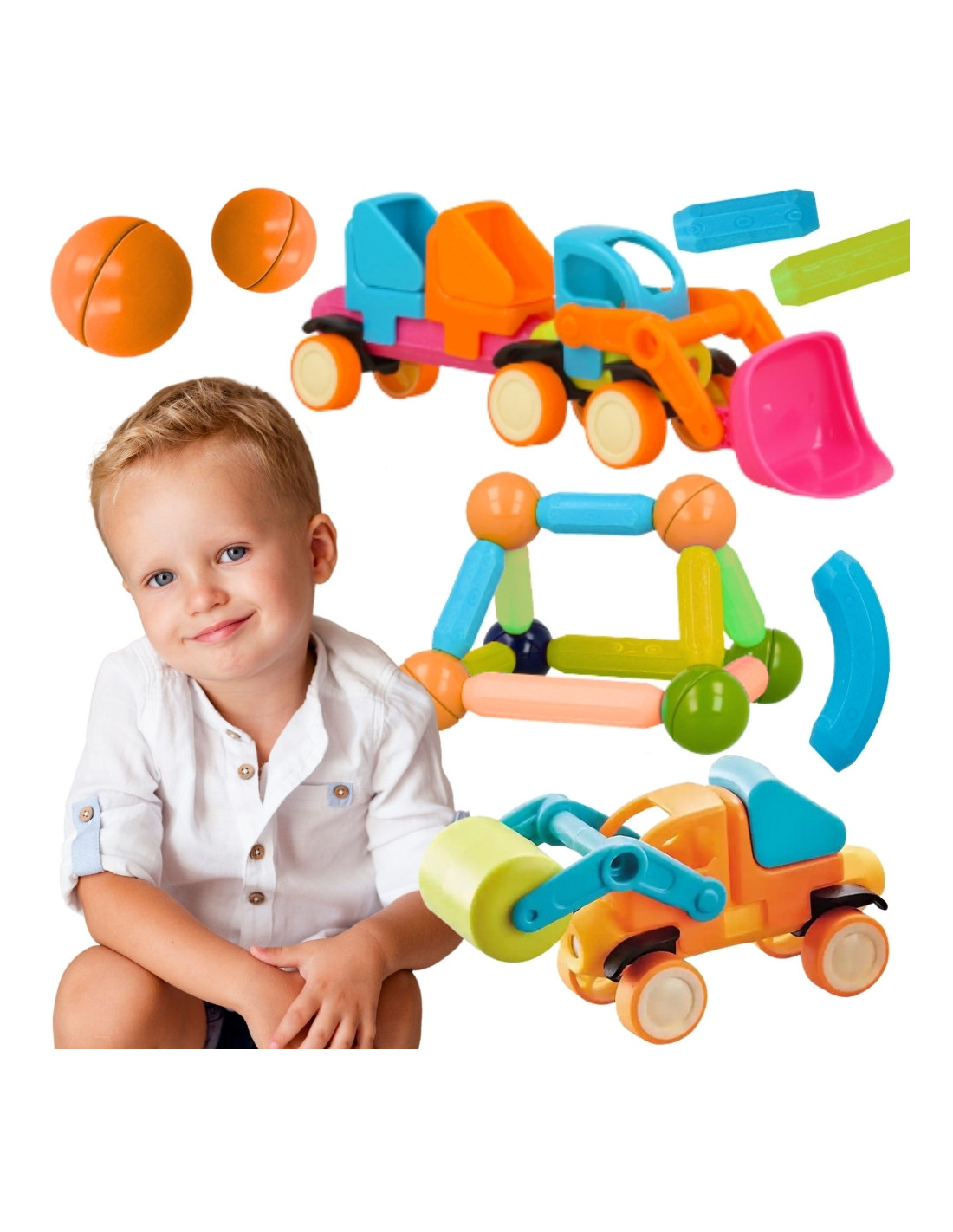 Discover the fascinating world of magnetic play with the Woopie construction set! 52 colorful magnetic pieces allow children to build endless amounts of vehicles and structures, where fun cars will travel adventurous routes. Strong magnets ensure stable connections, and the diverse shapes and colors stimulate imagination and creativity during play.