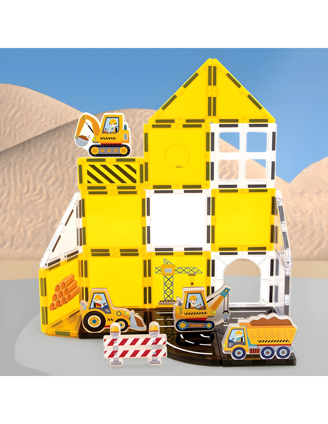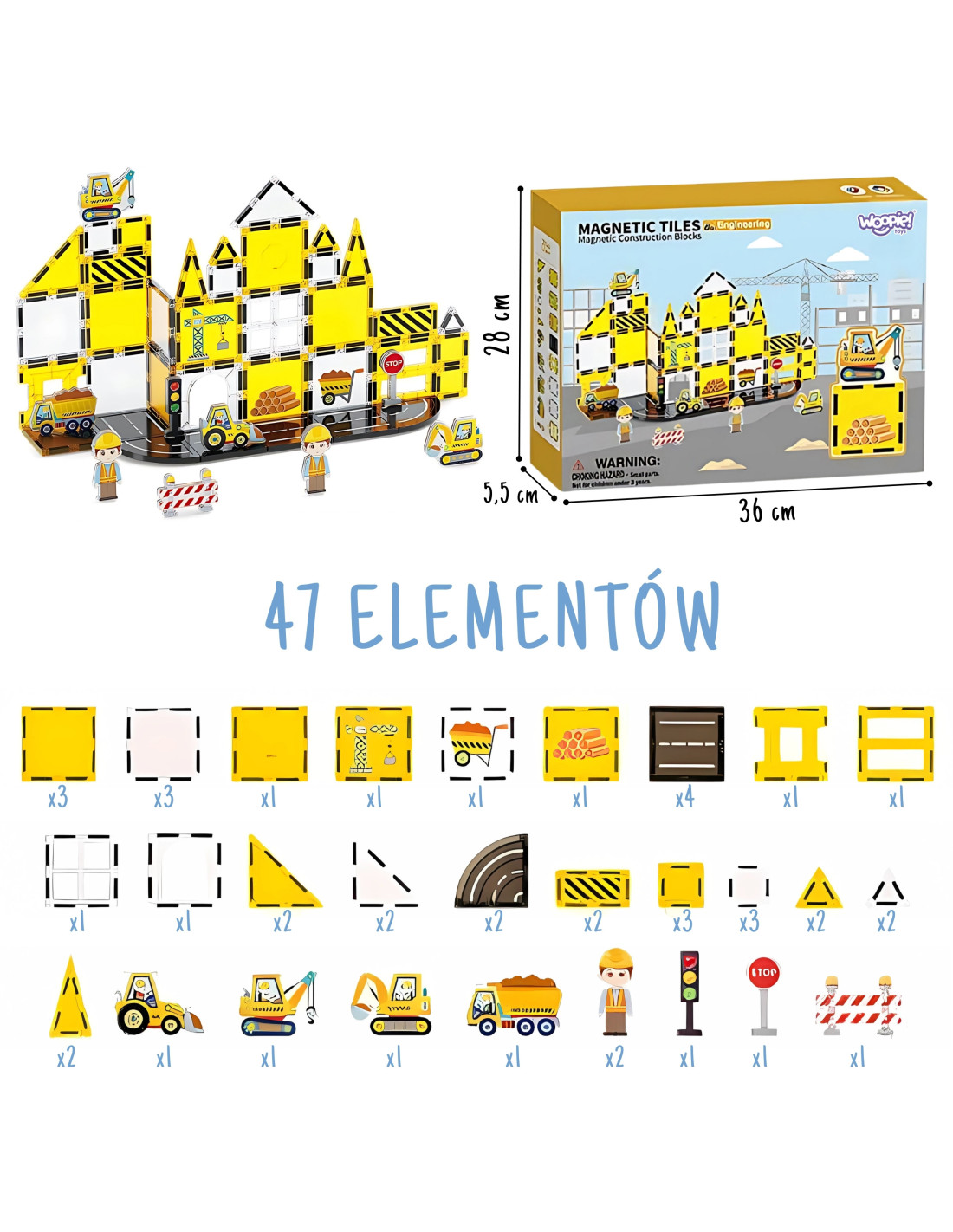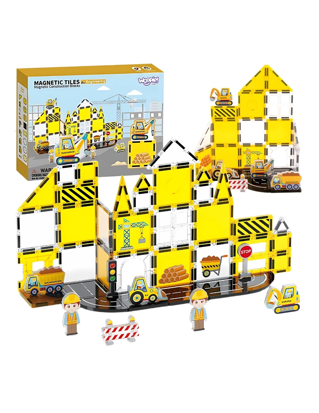 The Woopie Construction Site Magnetic Brick Set is a fascinating building adventure that will turn every child into a little engineer! This 47-piece set lets you create impressive structures, construction sites, and architectural masterpieces thanks to powerful magnets that connect with a satisfying click. Vibrant yellow and white tiles complement the construction vehicles and worker figures, creating a realistic world full of possibilities. Neodymium magnets ensure stability, while transparent elements add a visual impact that will delight any young builder.