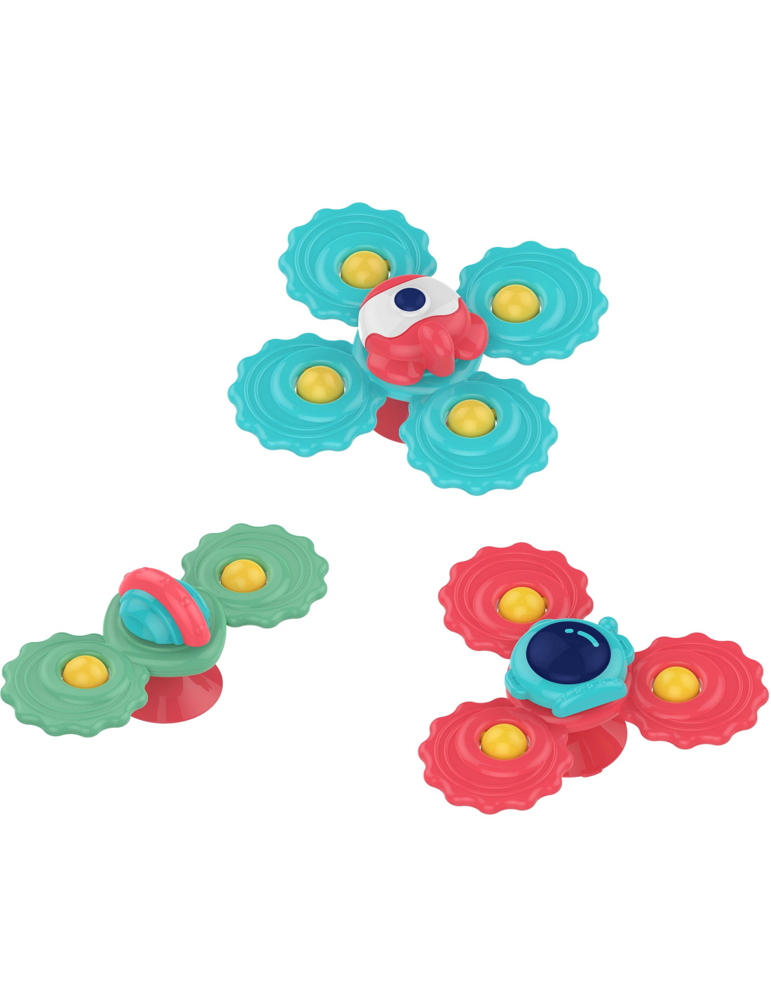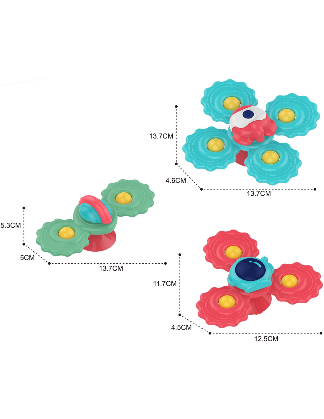 This set of 3 spinning spinners from WOOPIE is an interactive and colorful toy for your child. Each toy is unique and features 2, 3, or 4 arms , respectively. They can be attached to smooth surfaces, further enhancing play possibilities. Made of safe materials , they can also be used as a teether for your baby. Thanks to their various ridges and depressions, they perfectly stimulate the child's senses and motor skills.