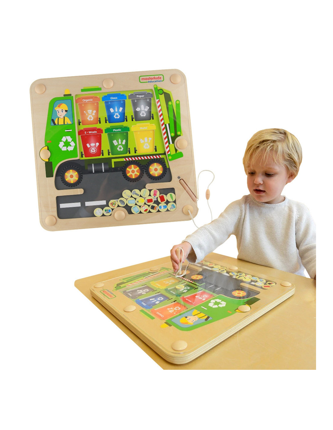MASTERKIDZ Magnetic Board Waste Sorting Montessori Recycling Truck