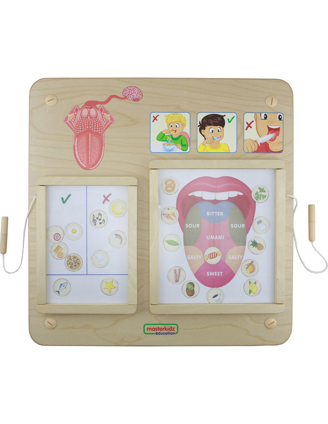 • - thanks to the board, the child will also learn how to protect the sense of taste - avoid hot food, keep the tongue away from sharp objects and brush their teeth