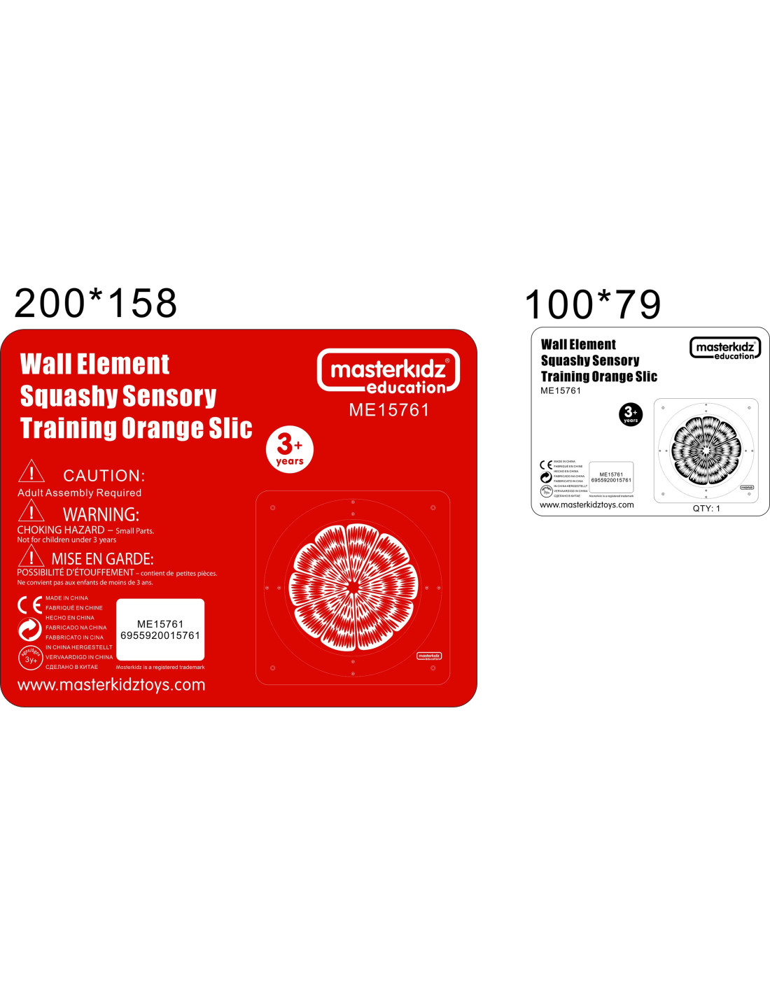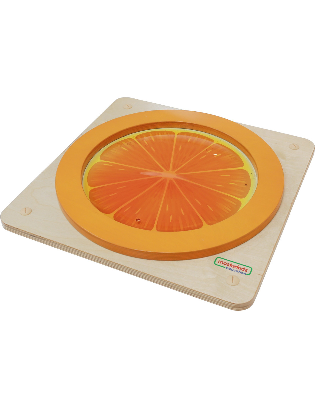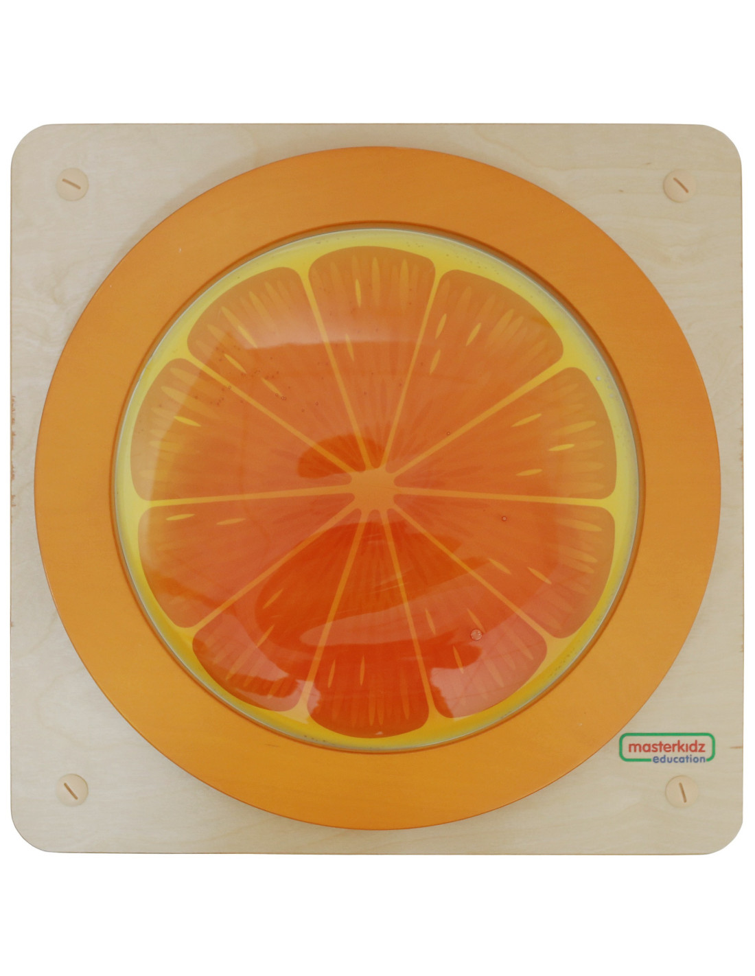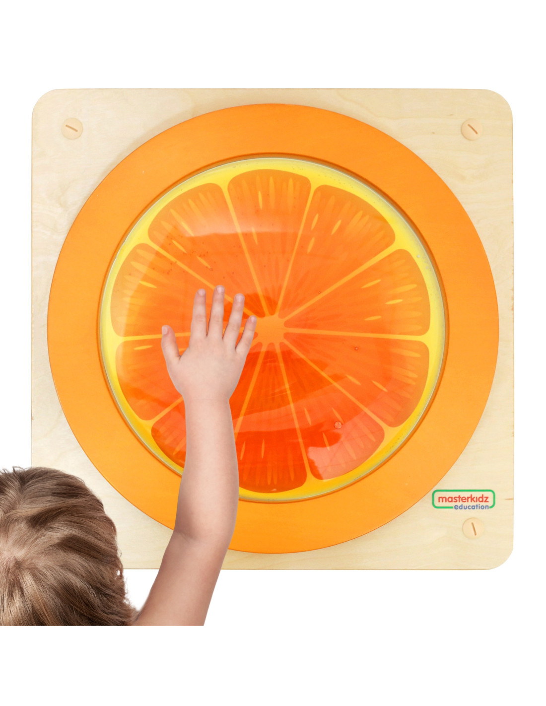 - - The orange wall panel encourages children to engage in sensory and tactile training