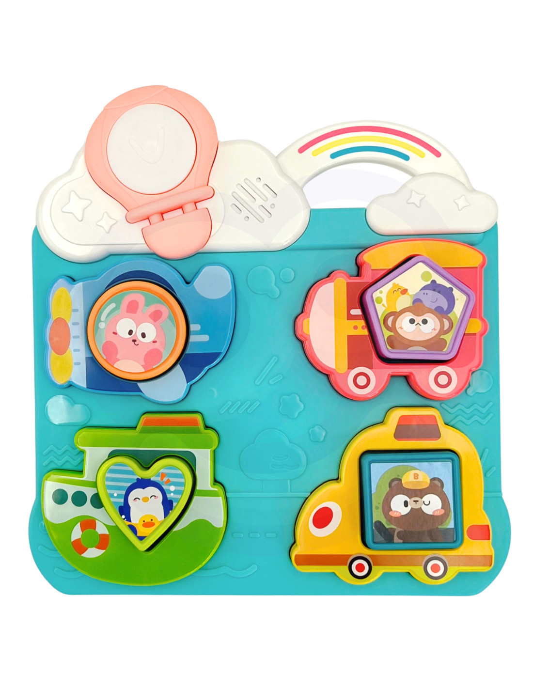 The interactive puzzle from WOOPIE is a charming educational toy designed with the youngest children in mind. It combines cognitive, sensory, and motor development, supporting a child's comprehensive development from the first few months of life. With its attractive colors, sounds, and interactive elements, the toy encourages toddlers to learn through play, while also developing their manual skills and ability to recognize shapes and colors.