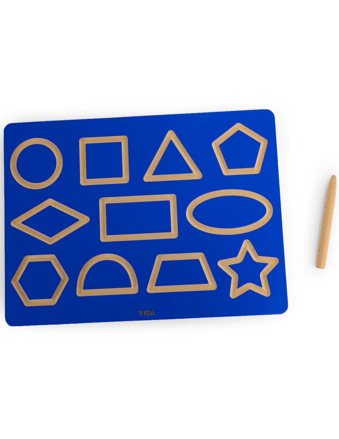 The VIGA drawing board is the perfect way for children to practice their hand before learning to write . Delicately engraved and curved grooves make it ideal for children to control hand movements and develop muscle memory through repeated tracing. The board is available in a compact size , allowing children to hold and use it on a table or desk. Through play, children learn the movements responsible for drawing and writing , develop fluidity , and practice hand-eye coordination.