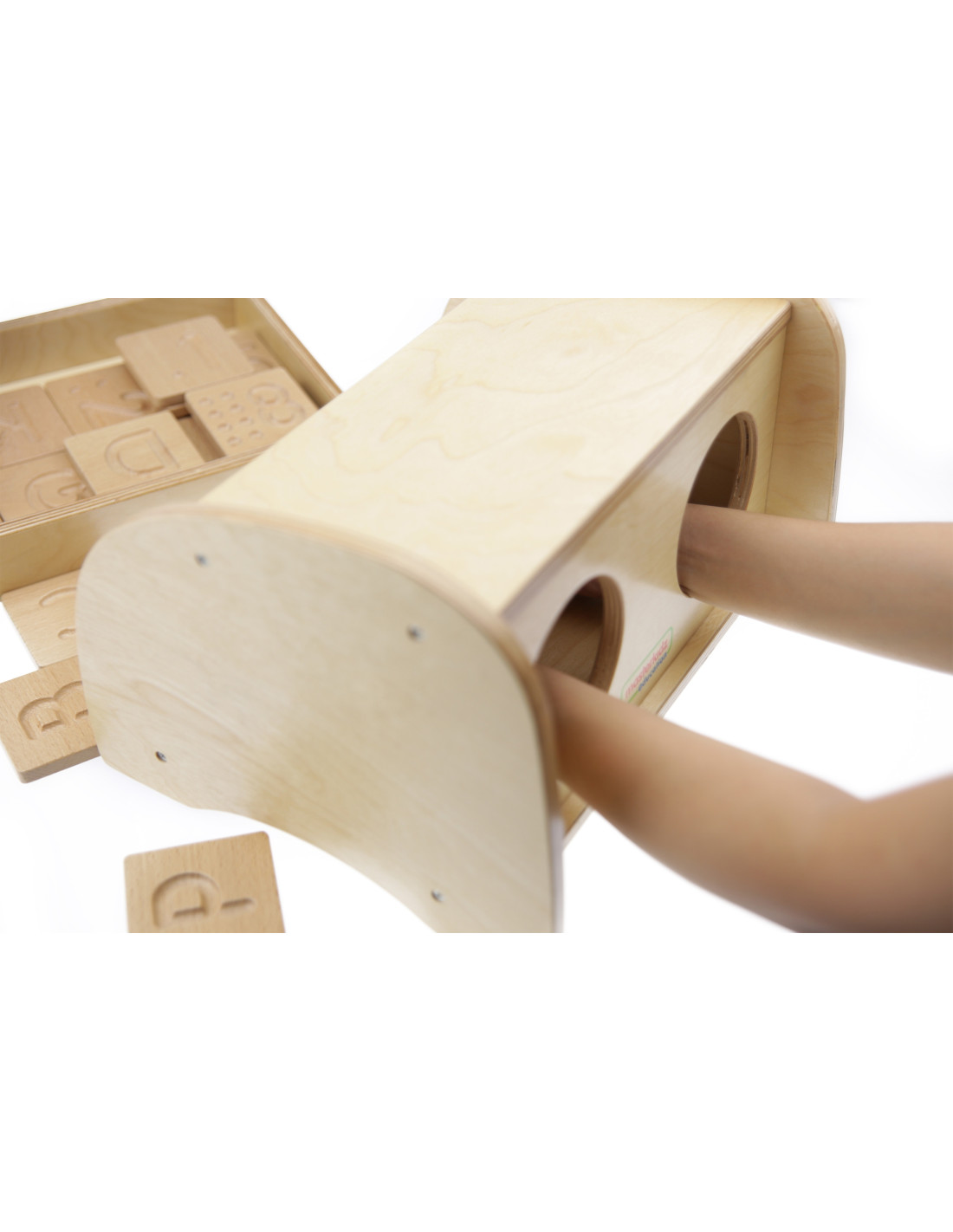 The Masterkidz Sensory Play Box is a unique solution for children that takes play to a new level by developing their sense of touch and creativity. Simply put your hands inside the box, touch the hidden object, and try to guess what it is, describing your impressions and solving puzzles together with friends. This innovative product was created with sensory exercises and comprehensive child development in mind. The box has two hand holes, allowing children to reach inside without peeking to identify the object they're touching.
