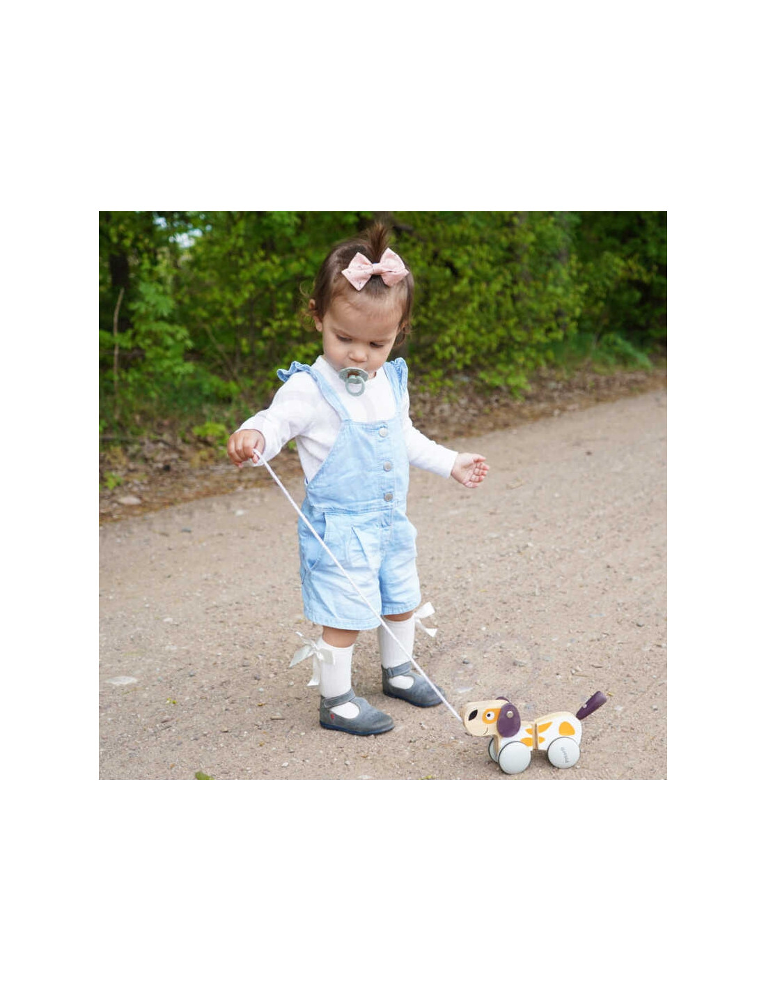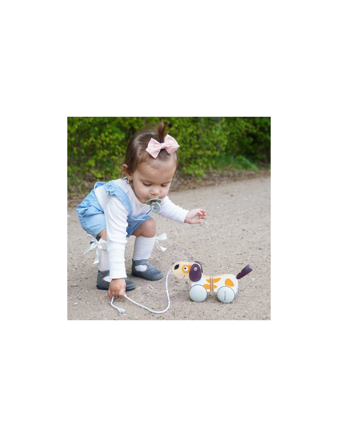 - - wooden dog on a string,