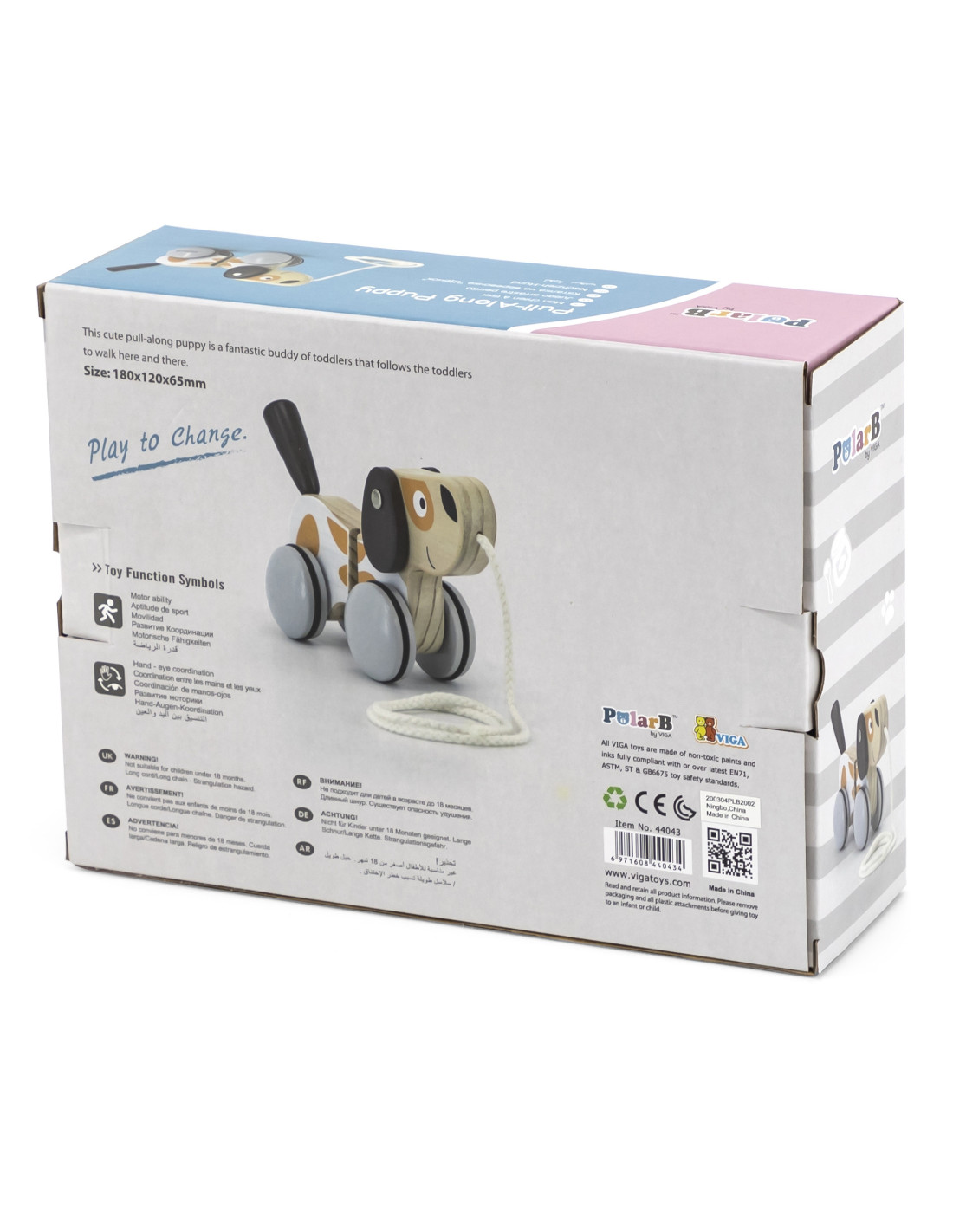 The Polar Wooden Dog on a Rope from Viga Toys is a great way to encourage walking for children who are just starting to take their first steps. Its trendy, subdued colors will be a perfect addition to any toy collection.