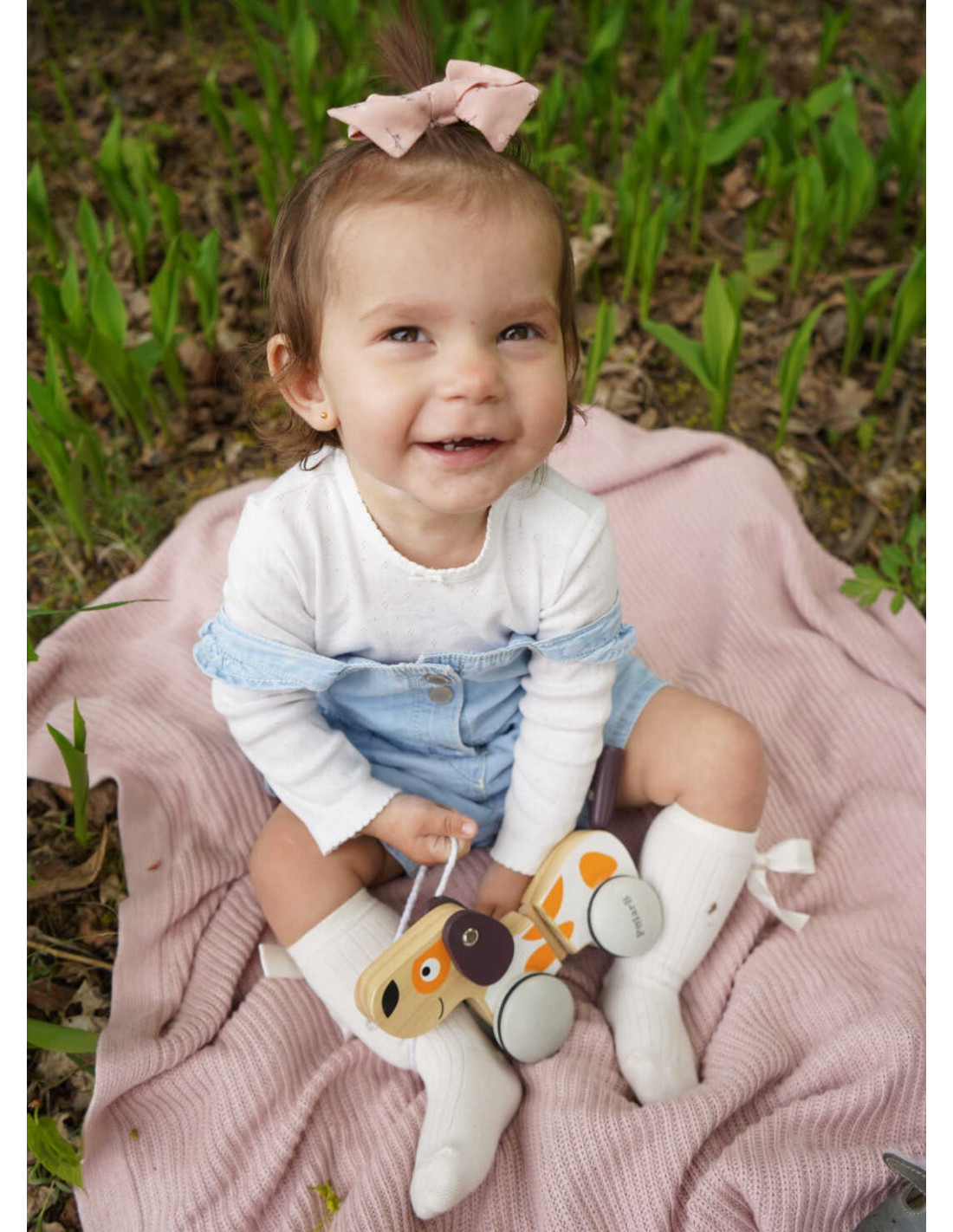 The little puppy comes with a leash that allows you to take it for a walk on the carpet and beyond. The dog will be very well-behaved during walks, and above all, it will be very quiet – the wheels have rubber pads. The pads will muffle any clicking noises. When the little one pulls the string, the dog will begin to move and wag its tail happily.