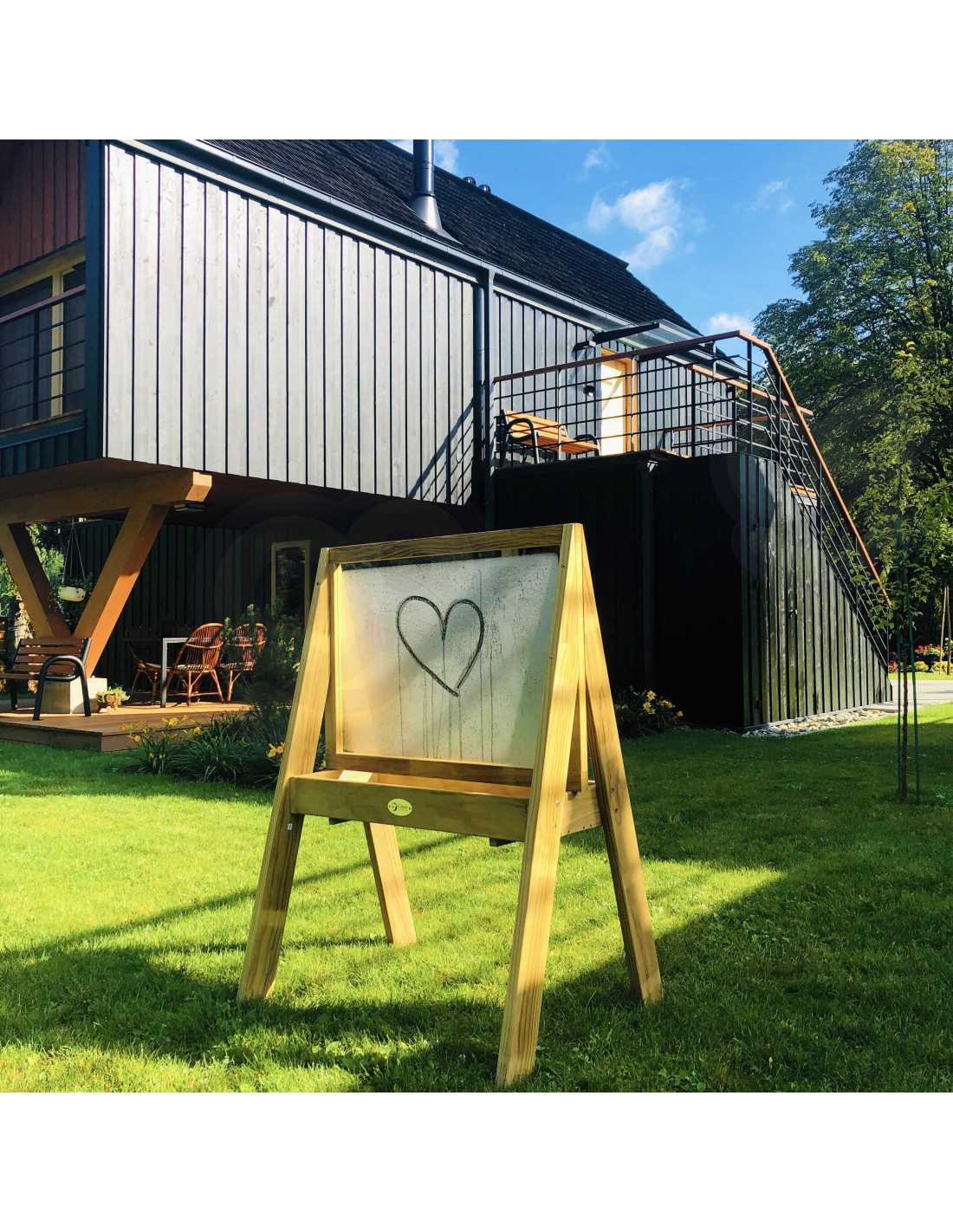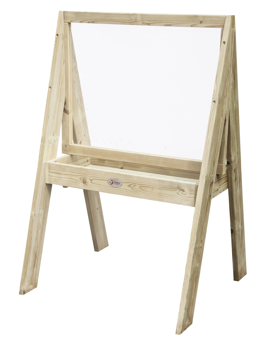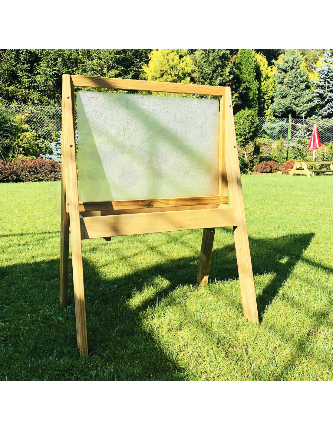 A large wooden easel for all budding little artists, this board from the renowned Classic World brand makes a great gift. Perfect for developing fine motor skills , practicing drawing, painting, and practicing lettering . The product is made of high-quality wood and painted with a non-toxic, child-safe impregnation . The board develops fine motor skills and enhances children's creativity . The solid wooden construction ensures a longer product life. The easel features double-sided plexiglass , allowing for painting on both sides. A container for paints can be placed on the shelf beneath the board for easier painting.