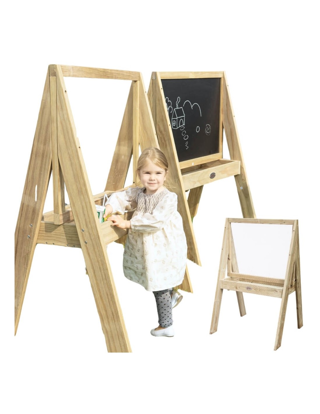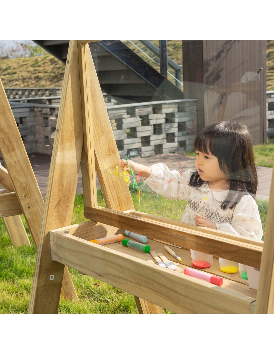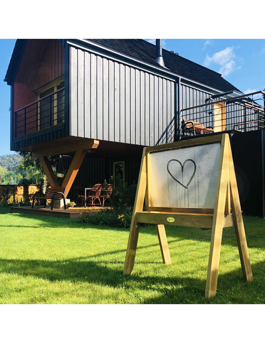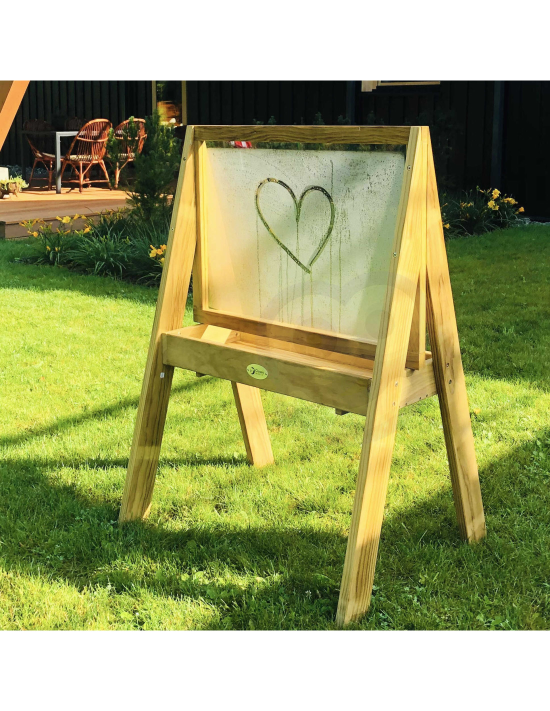A large wooden easel for all budding little artists, this board from the renowned Classic World brand makes a great gift. Perfect for developing fine motor skills , practicing drawing, painting, and practicing lettering . The product is made of high-quality wood and painted with a non-toxic, child-safe impregnation . The board develops fine motor skills and enhances children's creativity . The solid wooden construction ensures a longer product life. The easel features double-sided plexiglass , allowing for painting on both sides. A container for paints can be placed on the shelf beneath the board for easier painting.