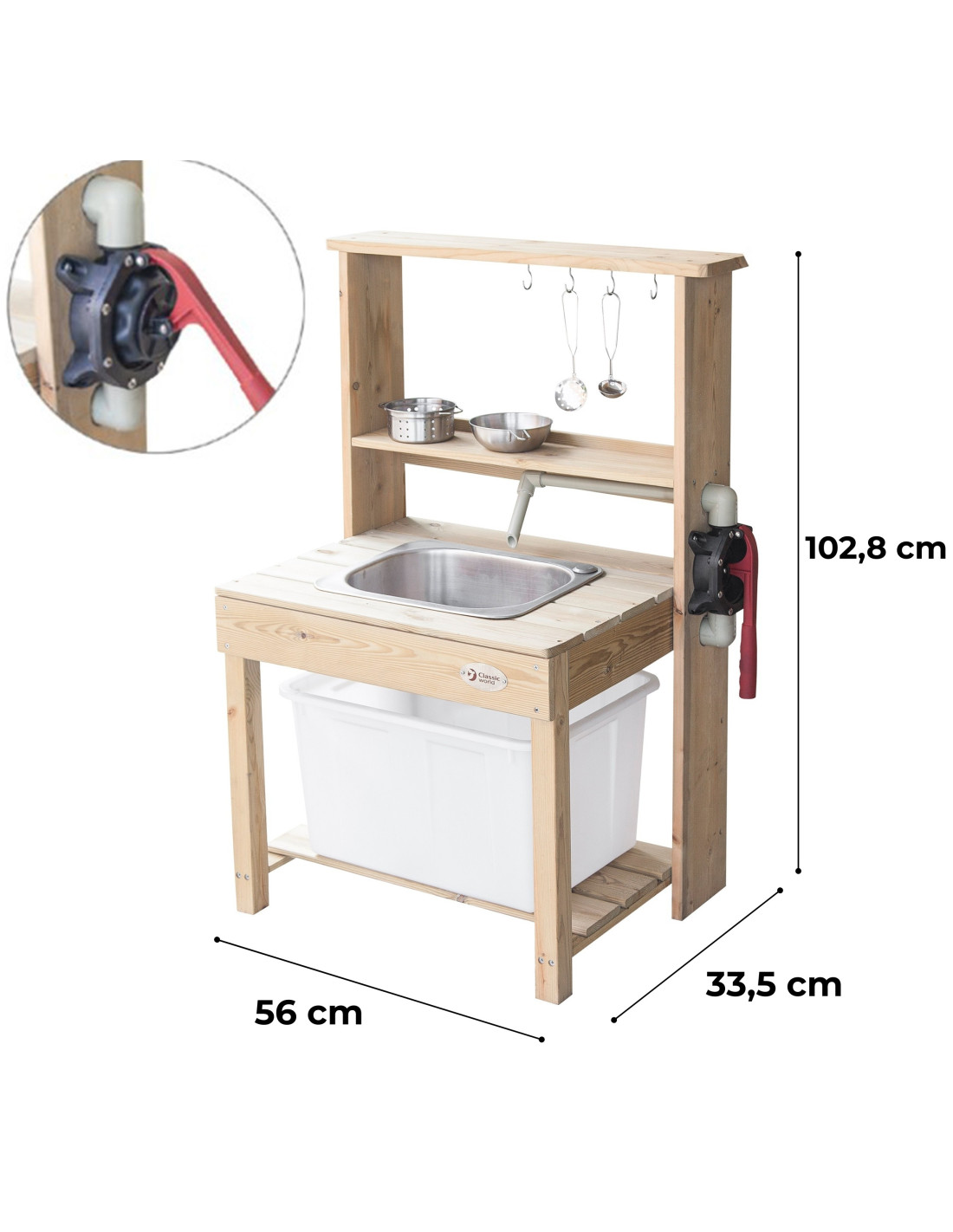 CLASSIC WORLD EDU Large Wooden Sink Kitchen Real Water