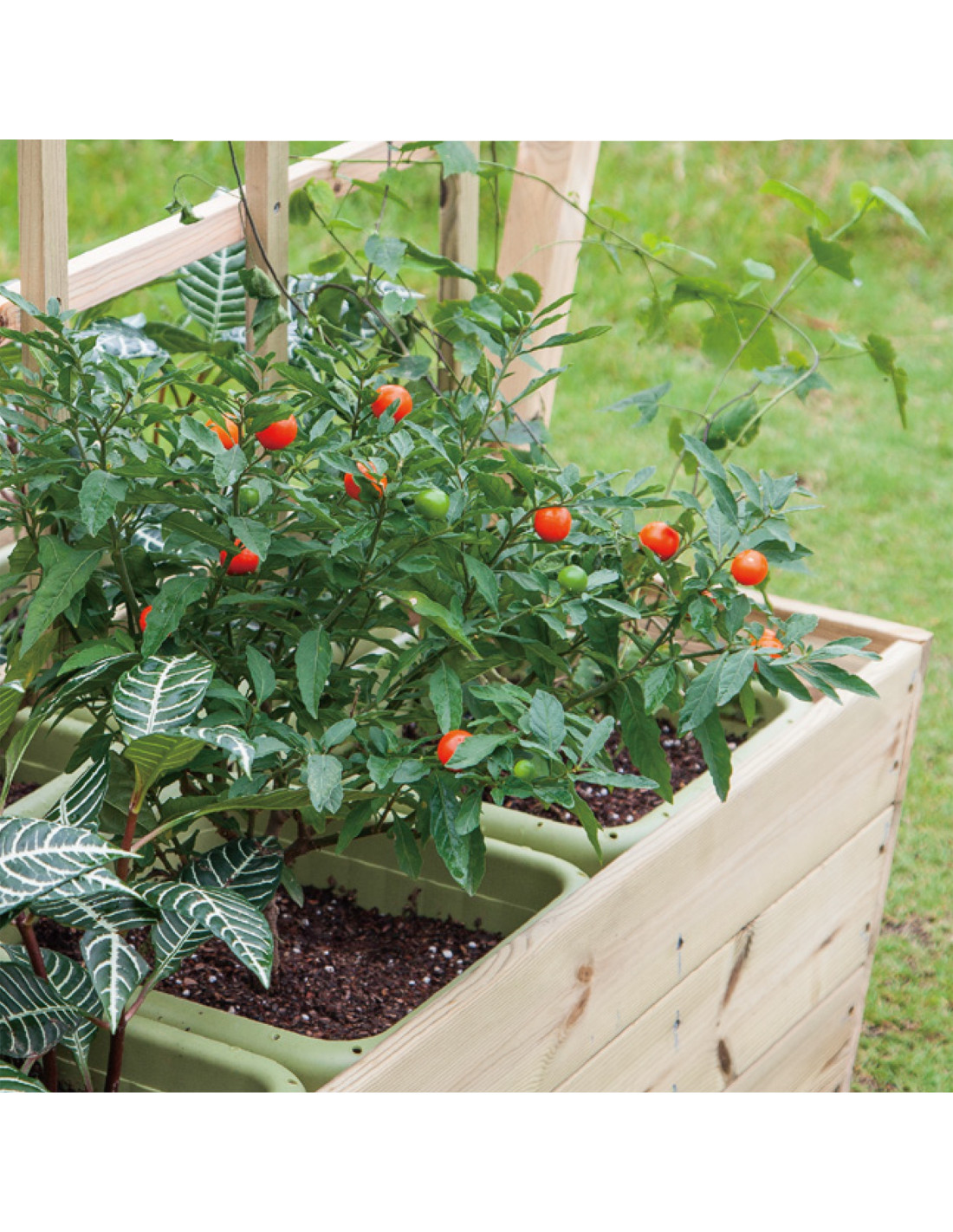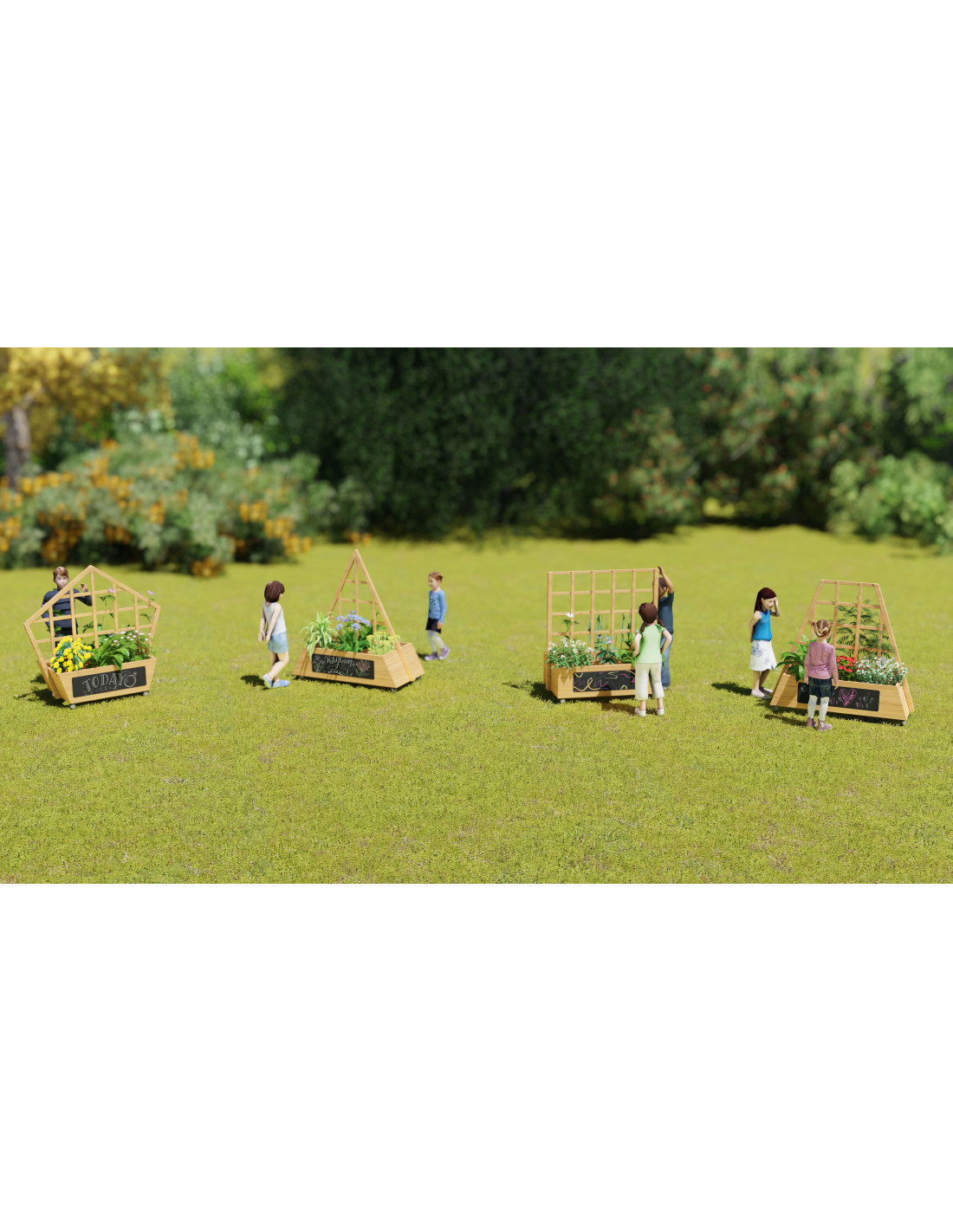 The Wooden Flowerbed from CLASSIC WORLD 's EDU series can be a wonderful addition to any outdoor space, playground, or garden! It includes six sturdy planters for planting a variety of flowers and a slatted arch for anchoring plants. Perfect for vines, but not only that—try planting anything you like! The front of the planter features a chalkboard for writing notes. While filling the planters and planting vegetables, children will have fun caring for the plants and learning responsibility and consistency . They'll also learn about plants and biology from a young age! A perfect set for role-playing —playing gardener will also improve cooperation and social communication skills!