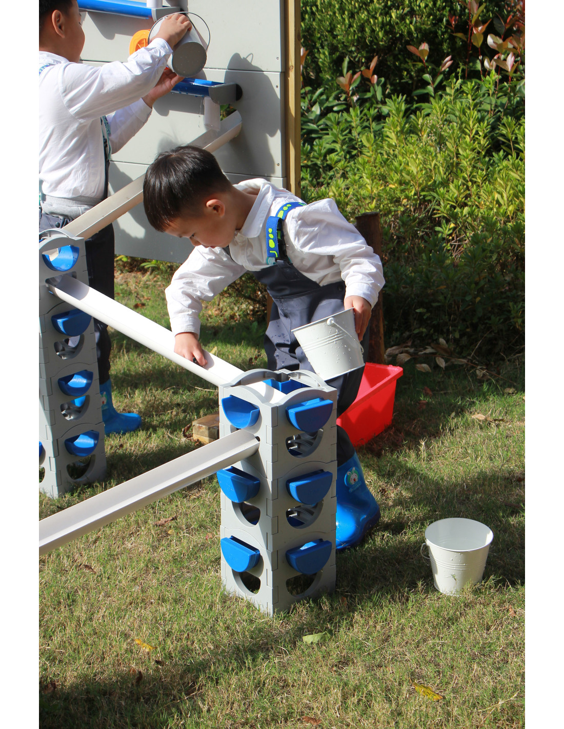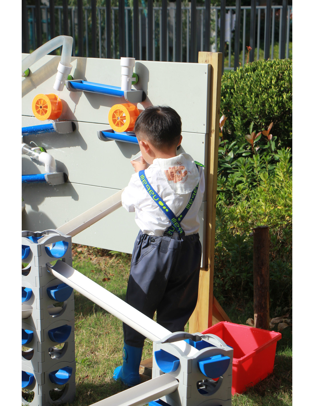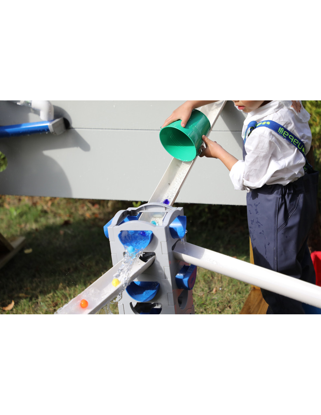 The CLASSIC WORLD Water Tubing Set was designed with children in mind, making it completely safe and durable . Children themselves decide on the layout and configuration of the playground. The tower can be set at various heights and in various configurations using water, sand, balls, and cars – so children can enjoy versatile play not only on hot days . It makes a great addition to a garden or as part of a CLASSIC WORLD water playground.