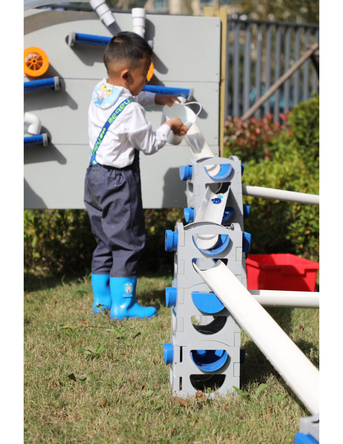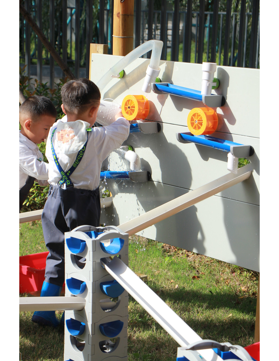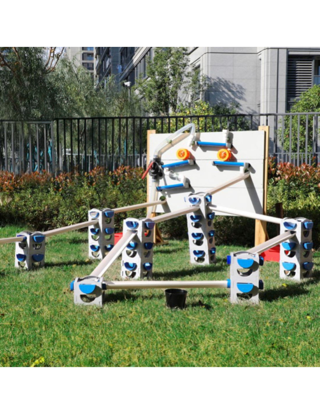 The CLASSIC WORLD Water Tubing Set was designed with children in mind, making it completely safe and durable . Children themselves decide on the layout and configuration of the playground. The tower can be set at various heights and in various configurations using water, sand, balls, and cars – so children can enjoy versatile play not only on hot days . It makes a great addition to a garden or as part of a CLASSIC WORLD water playground.