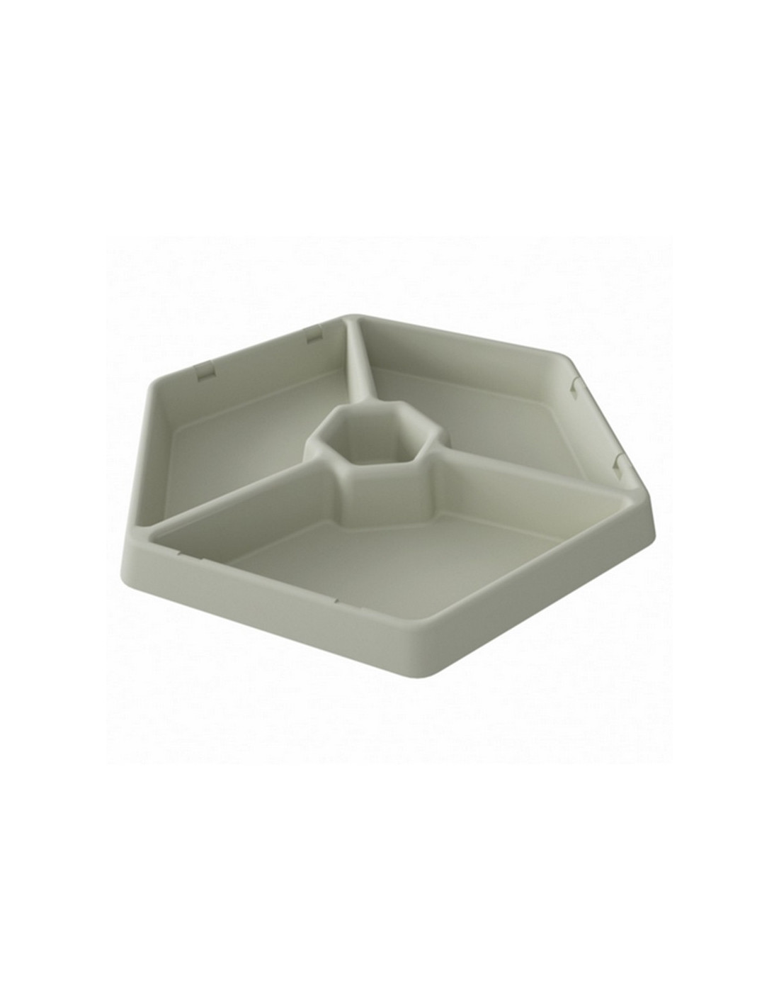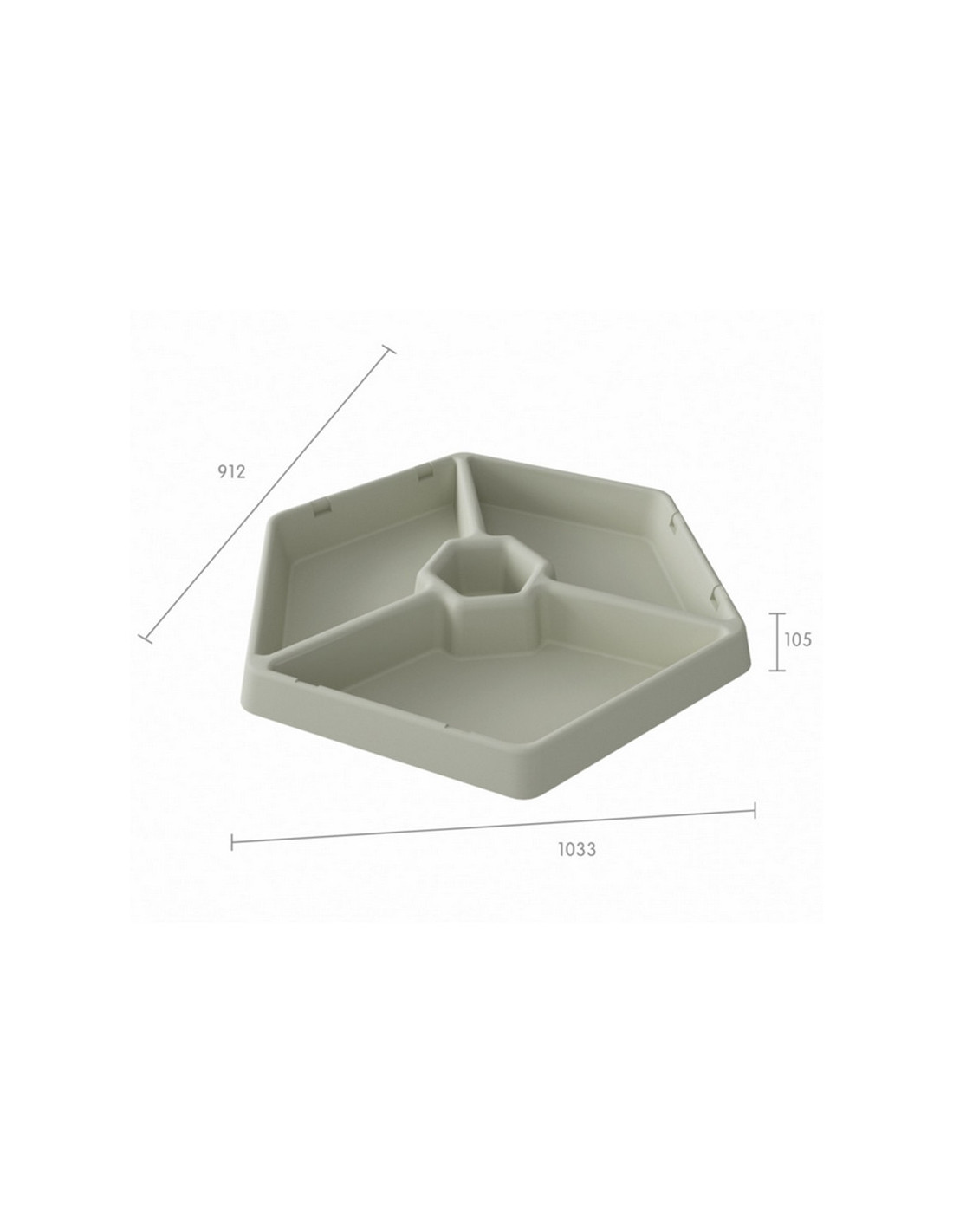 A hexagonal play tray is a great tool for developing children's imagination and creativity . The three-compartment play surface allows for three different activities at once, for example, playing with sand on one side, water on the other, and comparing and exploring different materials on the third. This tray is a great choice for parents and caregivers looking for a versatile and practical toy that will provide children with hours of creative play and learning. The tray can be used on the ground or placed on an adjustable stand , whose legs are height-adjustable (45/55/65 cm), allowing it to adapt to young children's growth. The tray stand is not included.