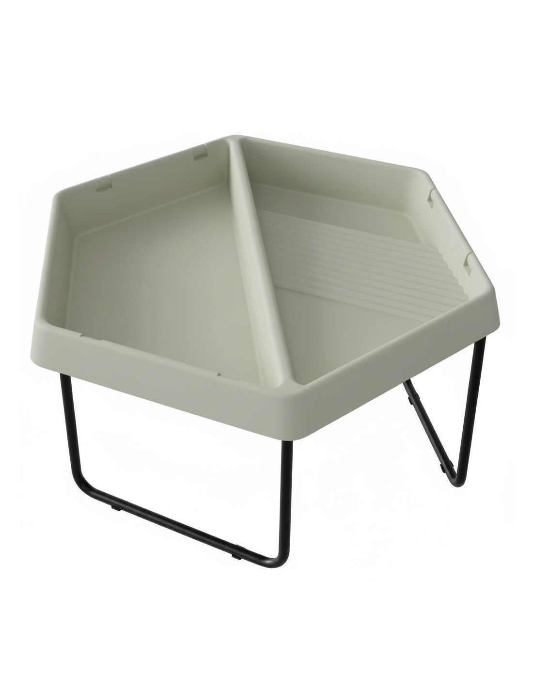 - - Hexagonal tray divided into 2 separate compartments – ideal for conducting two activities at the same time or working with three different substances.