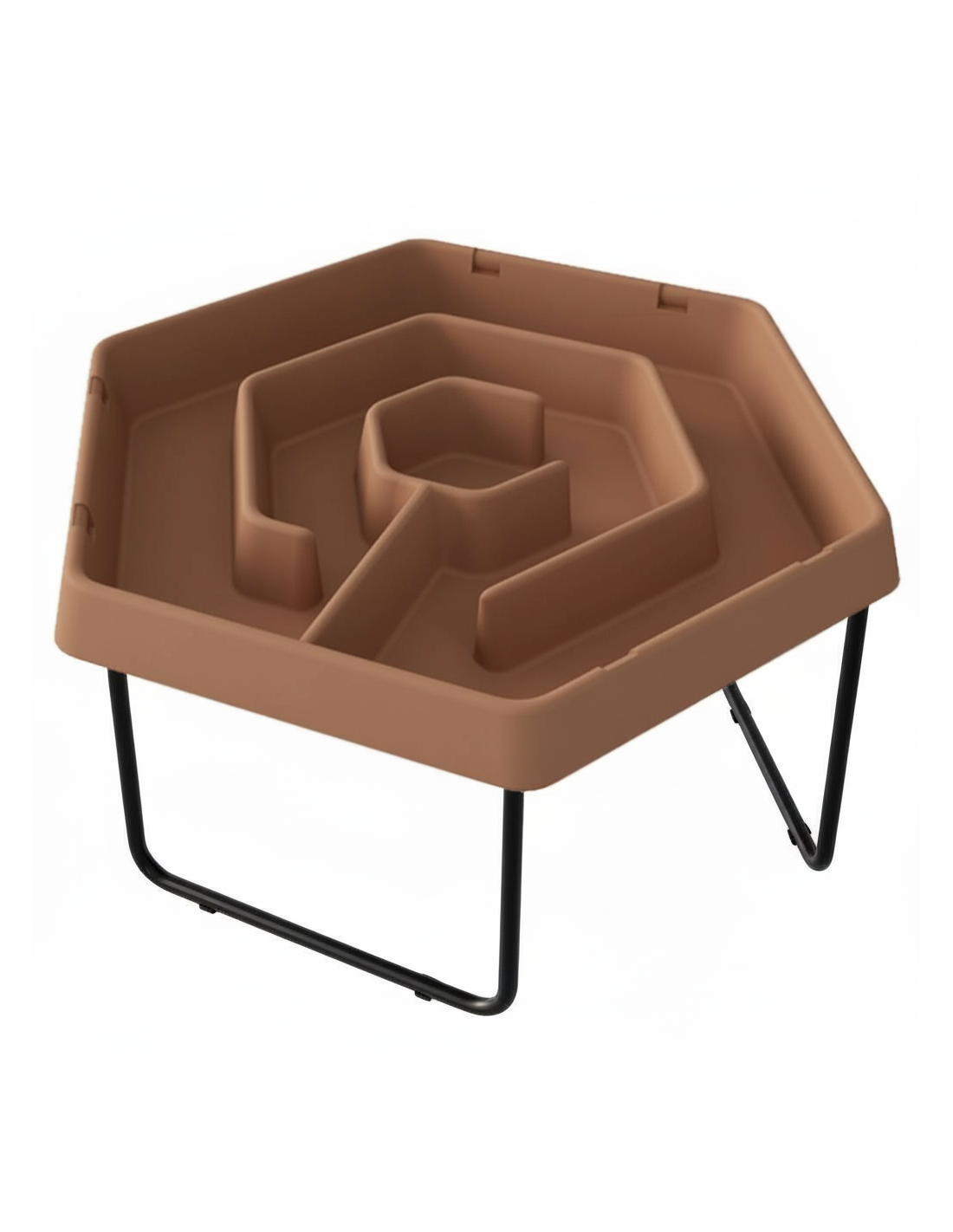 The Masterkidz hexagonal water maze table is a unique play area where children can launch boats and ducks through winding channels, watching the water flow and change direction. The stable, height-adjustable metal frame and tray with waterways create an attractive, spacious space for experiments, themed play, and shared entertainment.