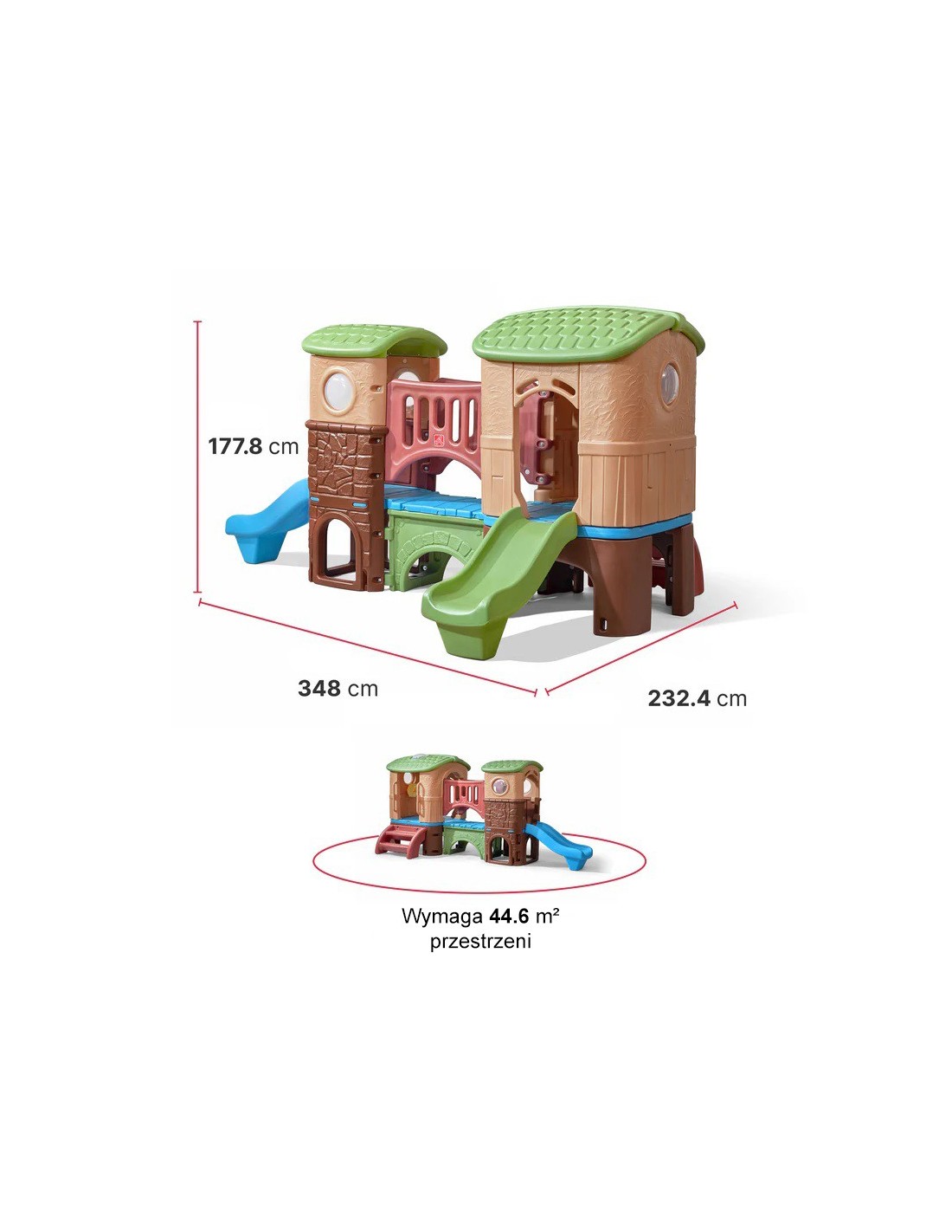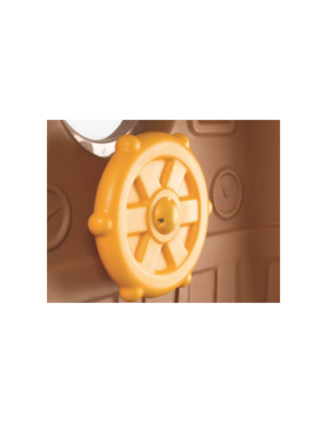 - - The house has a ladder with large steps, a handrail to help with climbing, a round window, a skylight, a steering wheel and a gentle slide with a slide length of 98 cm leading to the hiding place underneath.