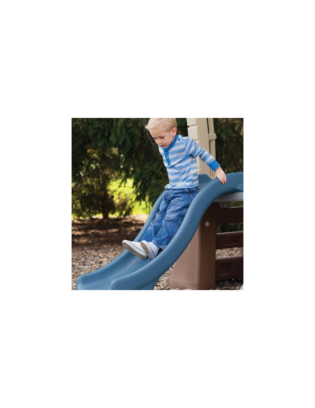 - - The playground includes: a ladder and a 130 cm long slide , two swings, and a steering wheel.
