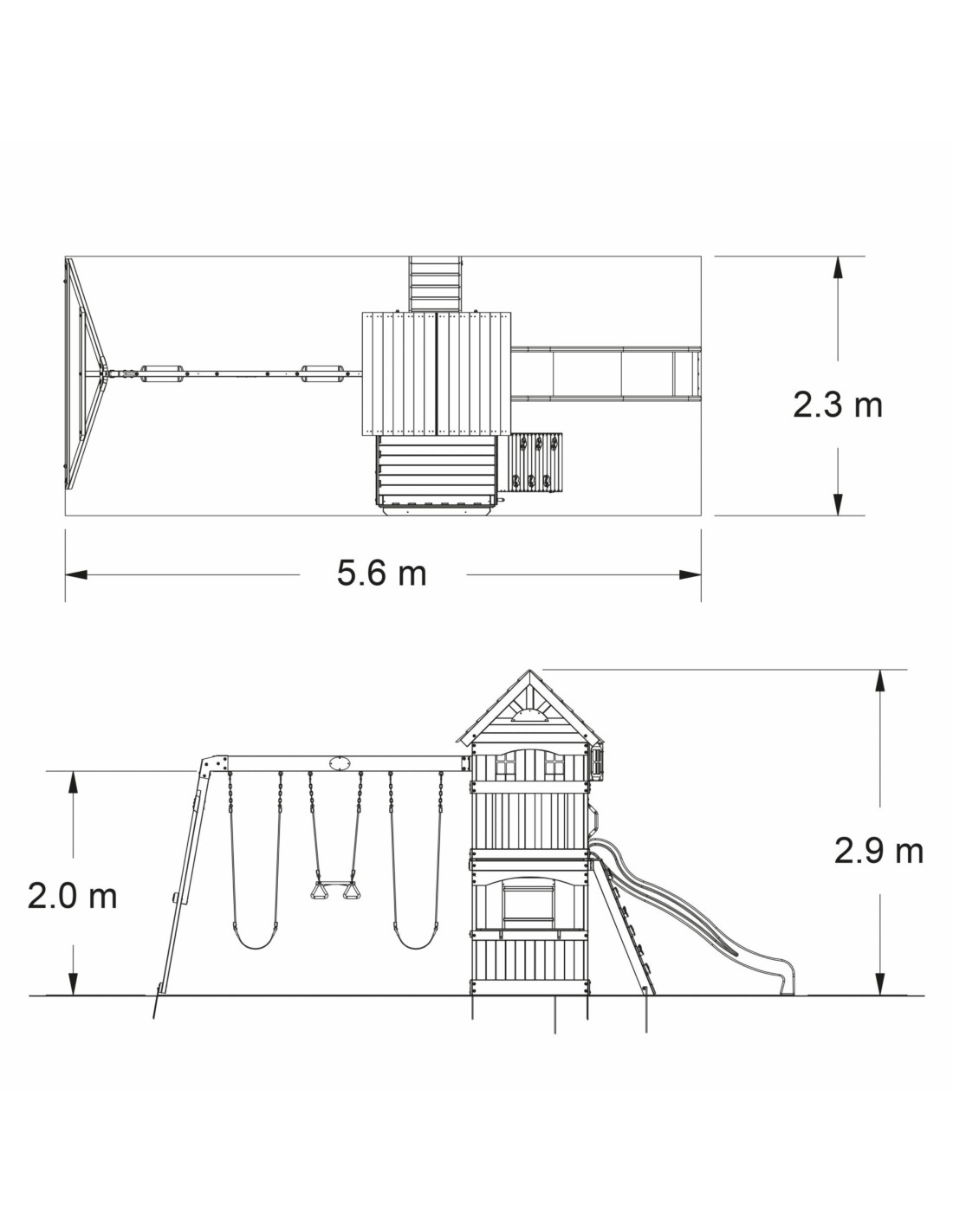 The enormous Sunnydale Backyard Discovery Playground is the perfect addition to any garden. From now on, the garden fun will never end! The Atlantic Wooden Playground is a fantastic activity center offering a wide range of play options. It features a platform house-style structure on stilts with a long, undulating slide, accessible via a ladder or climbing wall with safety grips at the top. A beautiful wooden roof covers the entire space, providing shade from the sun. A balcony on the upper level is an added bonus.