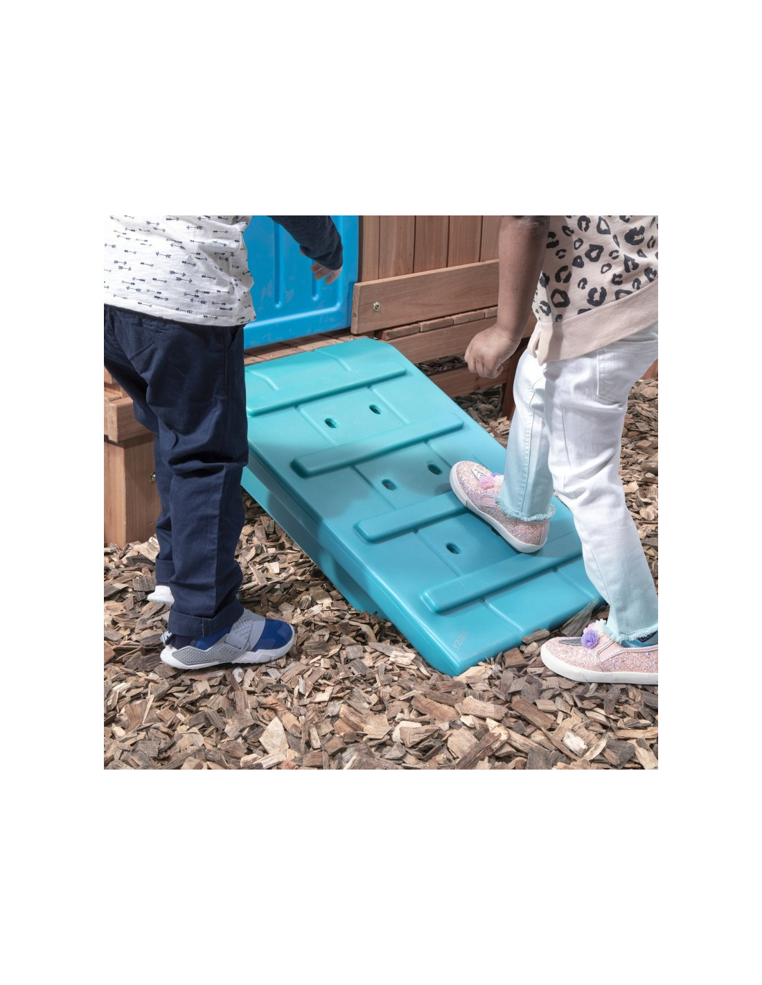 - - Use the sturdy handholds to climb to the upper platform! The colorful panel walls are fun to peek at and provide extra safety.
