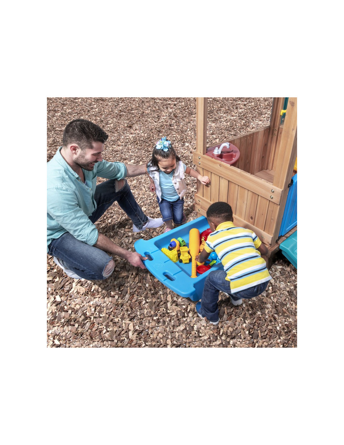 - - Inside, bake some food on the stovetop! Don't forget to wash the dishes – the pretend kitchen sink lets kids practice cleaning!