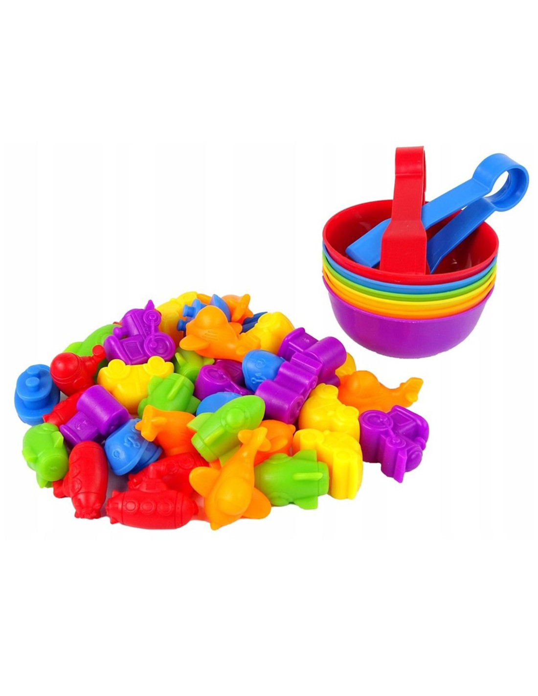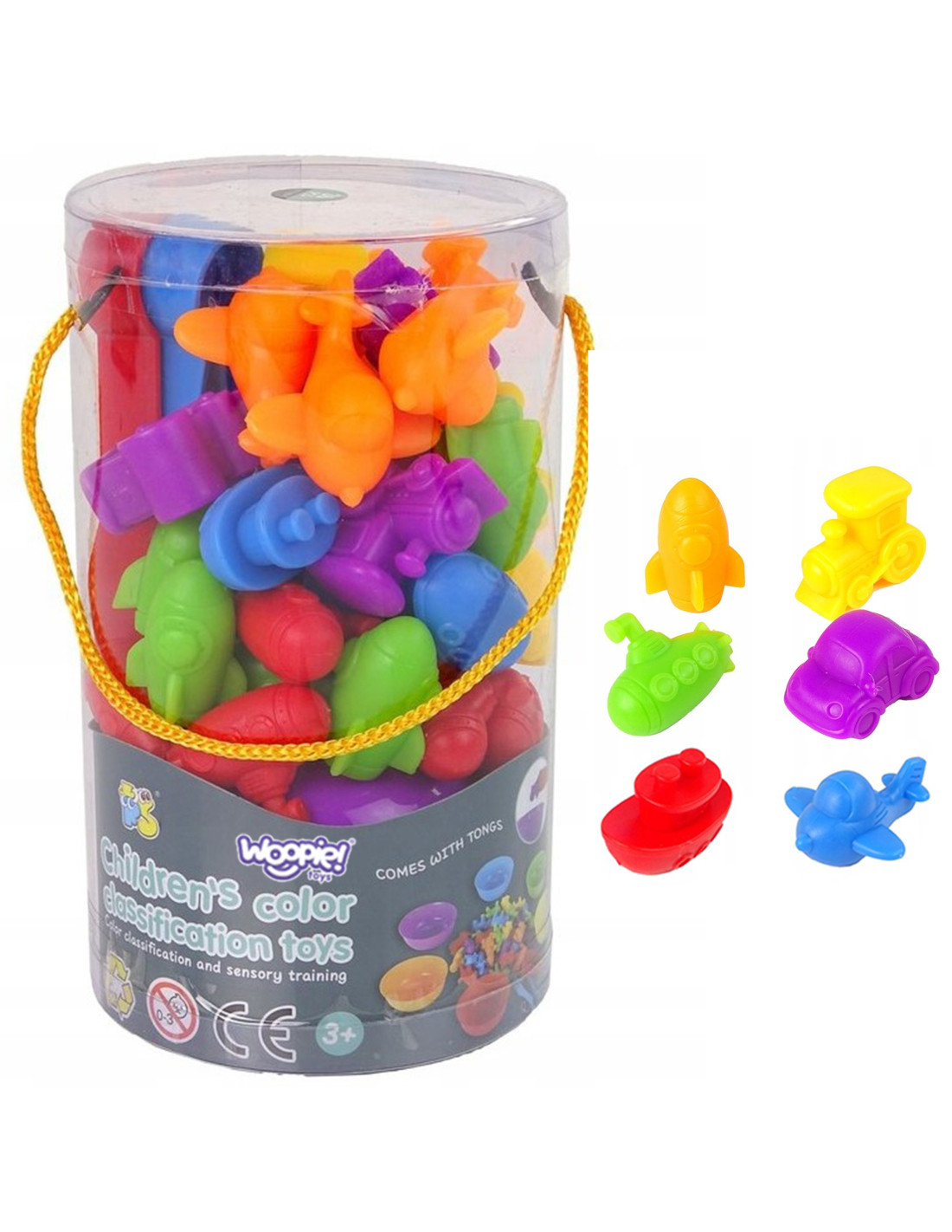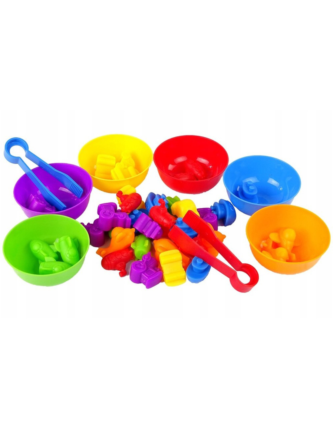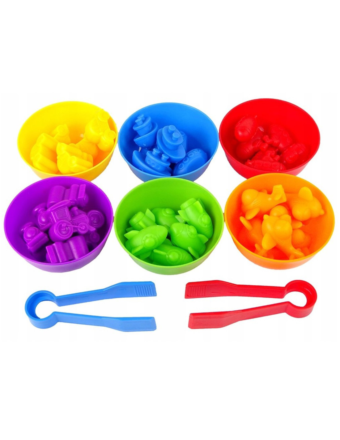 The WOOPIE Vehicle Color Sorter Educational Toy is a simple yet effective learning and play aid. The game involves pouring all the figures into the center, then using tweezers to transfer each piece to the appropriate bowl. The toy also offers many educational possibilities . Besides learning colors, the figures can also be used to teach counting . Two children can play with the set simultaneously, learning division, cooperation , or timed competition . The set is a great alternative to standard learning methods – learning through play!