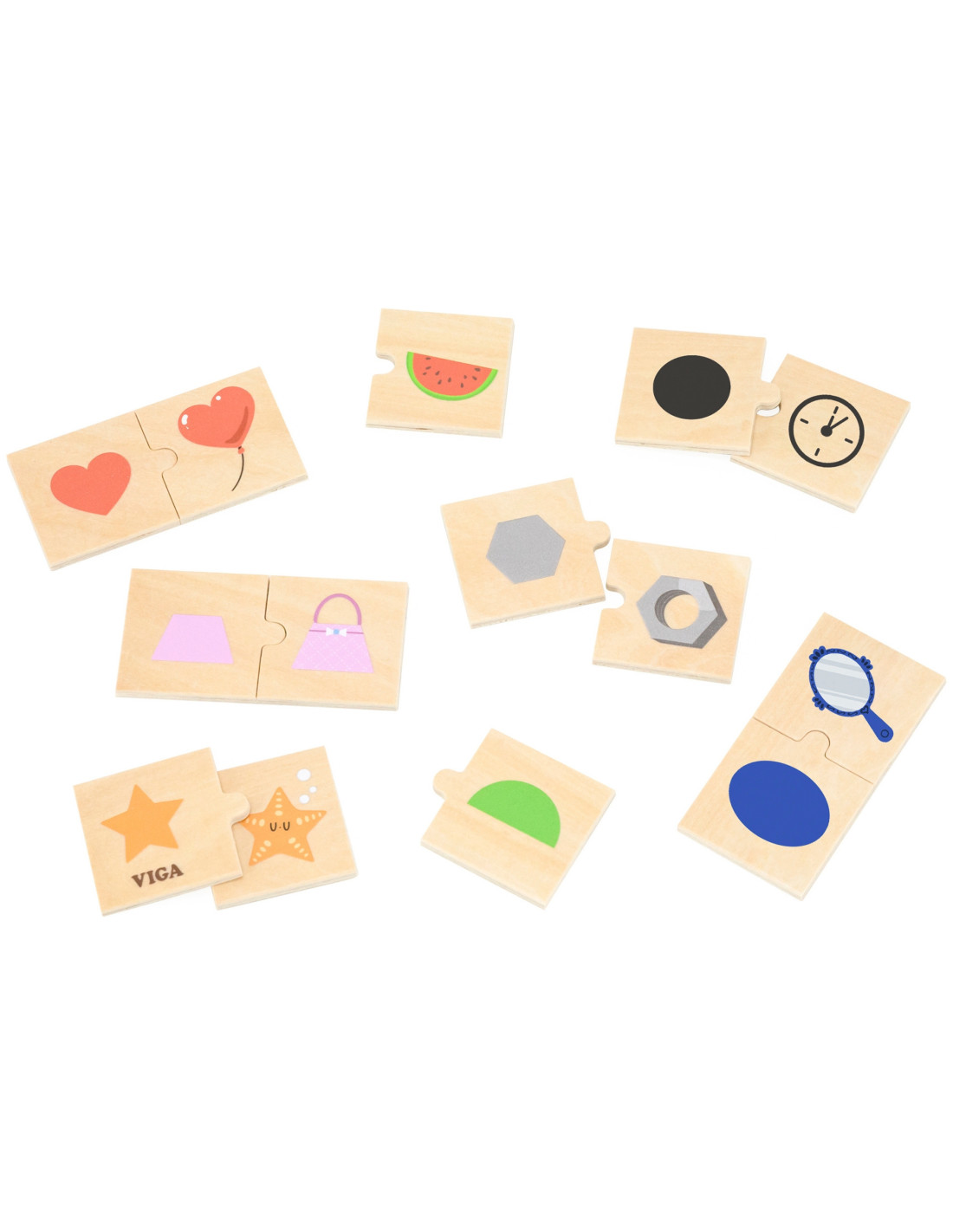 The "Match the Shadows" puzzle set from VIGA is the perfect combination of fun and education . These logic puzzles are classic jigsaw puzzles that will delight every child. With their beautiful, colorful pieces, they not only provide engaging play but also support early learning through play . The colorful characters on the puzzle pieces will capture children's attention , helping them learn colors and explore the world around them, as well as develop new words, rhymes, and songs. This wooden puzzle helps children learn to recognize and distinguish the shadows of everyday objects.