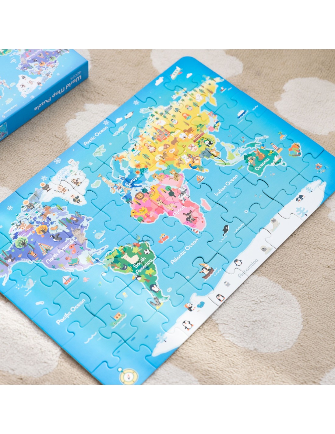 This colorful world map puzzle develops observation skills, manual dexterity, imagination, and geographical knowledge. Children learn about the continents, oceans, and diversity of our globe in a fun and interactive way.