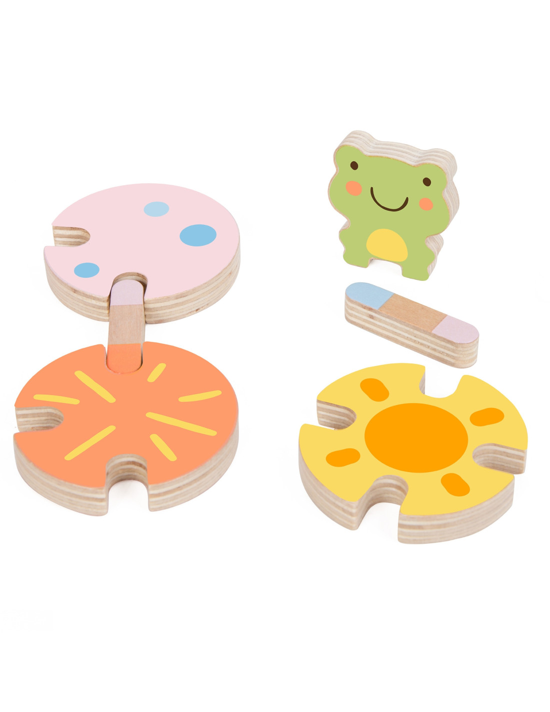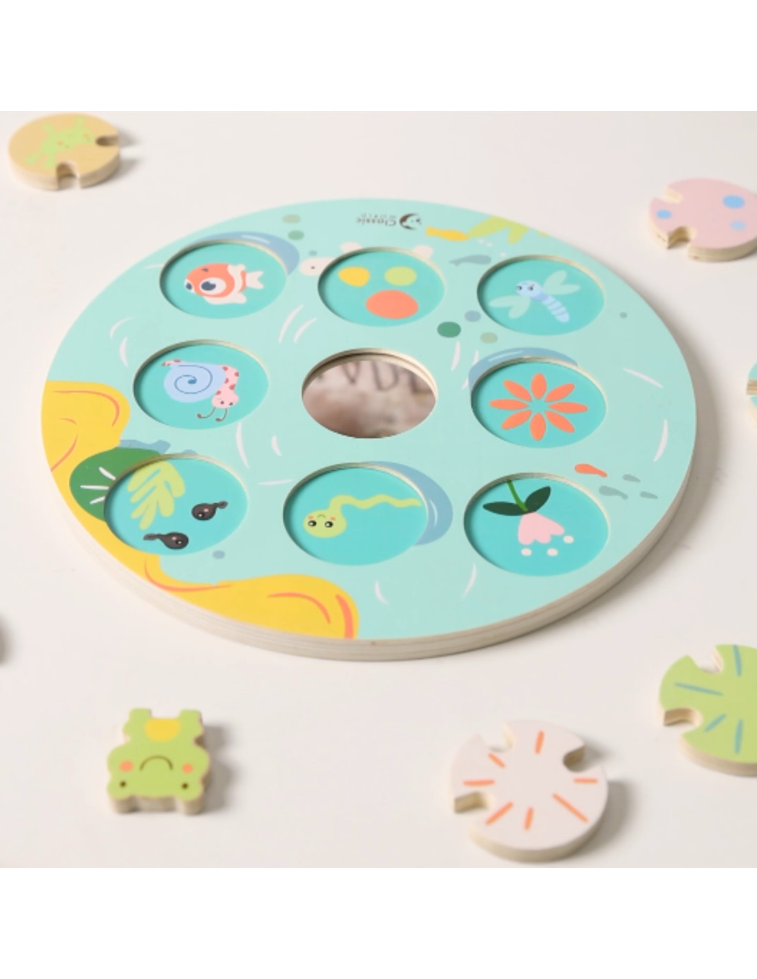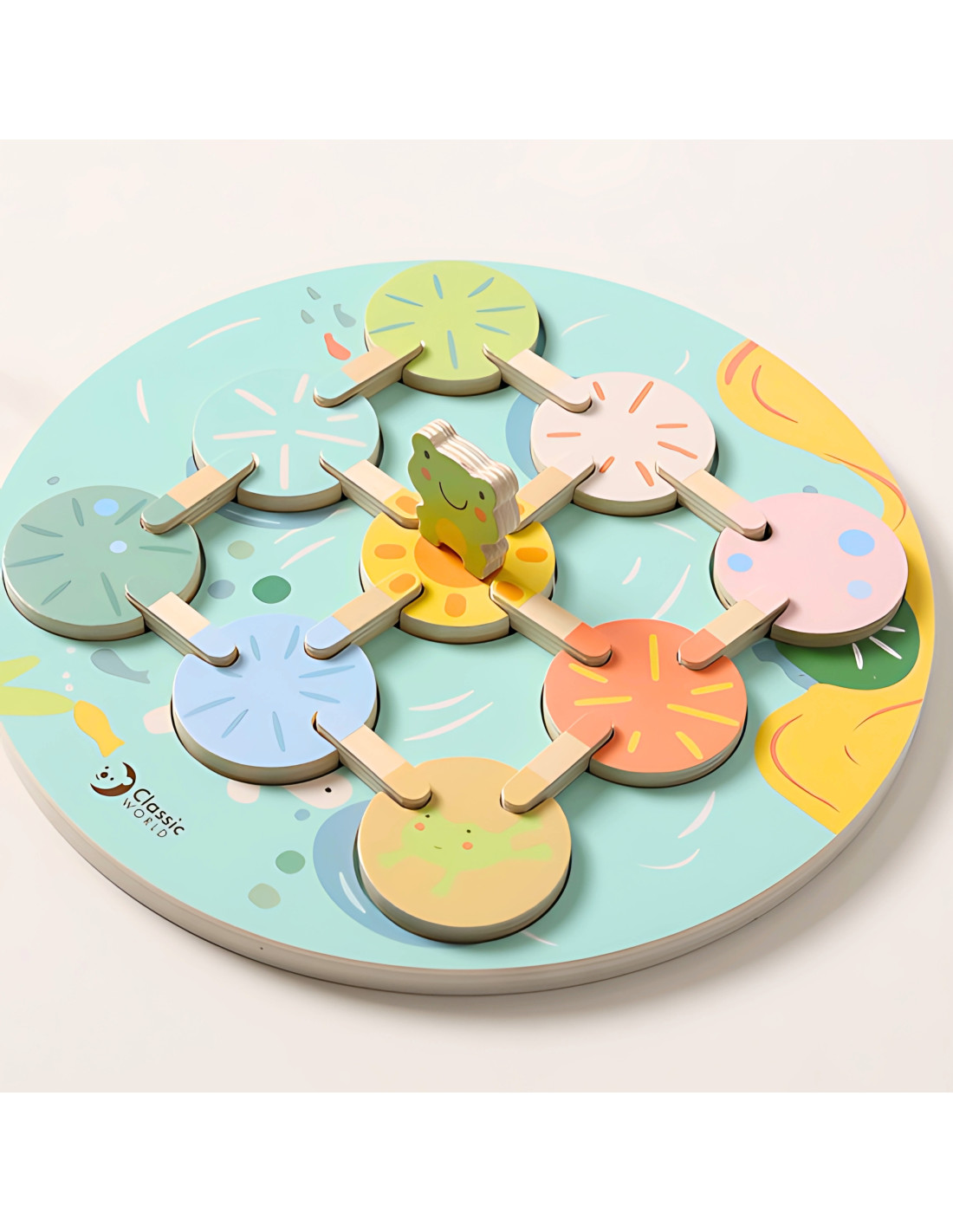 Immerse yourself in the world of ponds and nature with the charming educational game "Lotus Leaves"! This unique color- and shape-matching toy stimulates imagination and teaches logical thinking through play. Wooden elements, pleasant colors, and a cute frog will provide children with hours of joyful and creative play.