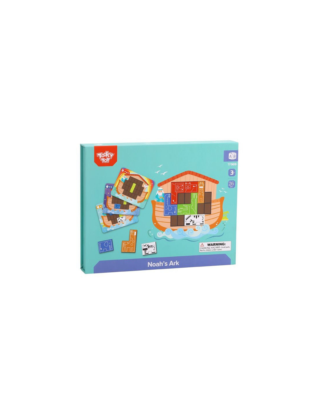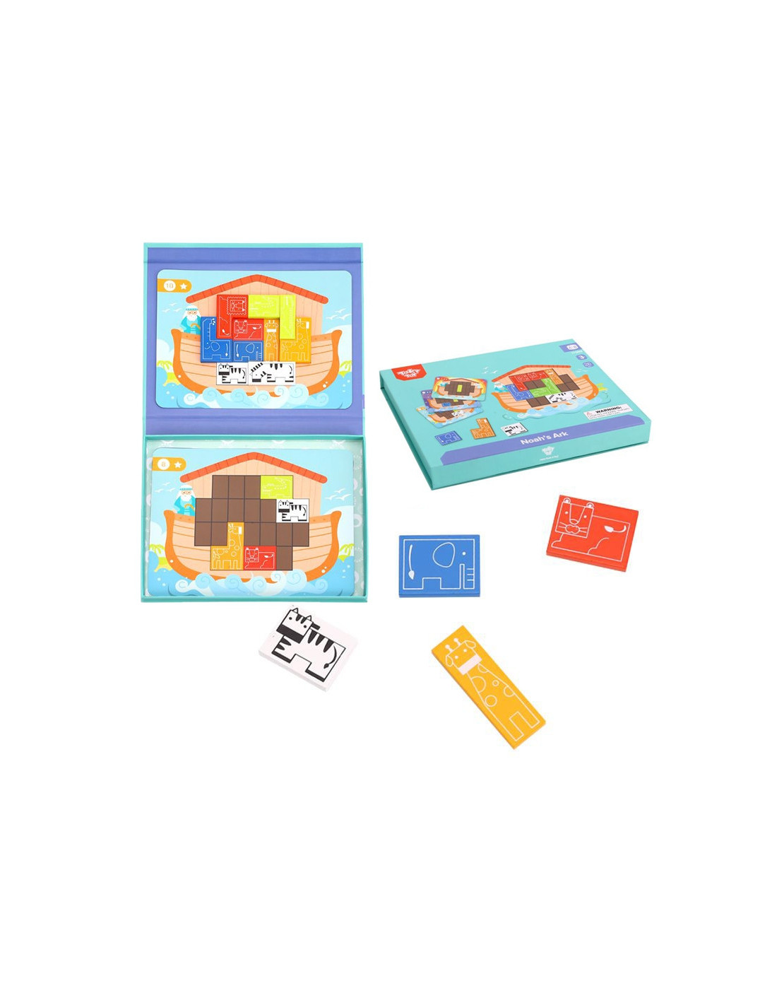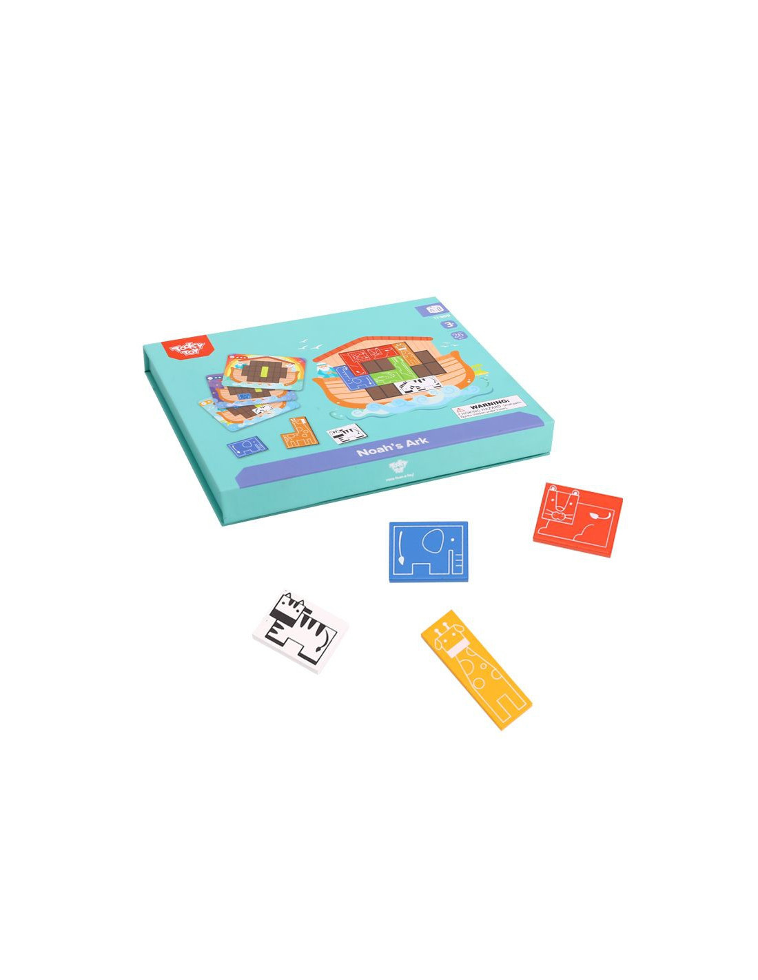 Noah's Ark Puzzle from TOOKY TOY. This toy features 10 animal-themed blocks and 15 double-sided boards with 30 patterns at varying levels . Just like Noah, children must match the animals on the ark to fill the entire board . This toy develops manual skills , logical thinking , and improves your child's concentration . Besides being a fun activity, this puzzle will help them learn about the history of Noah's Ark and pique their curiosity.