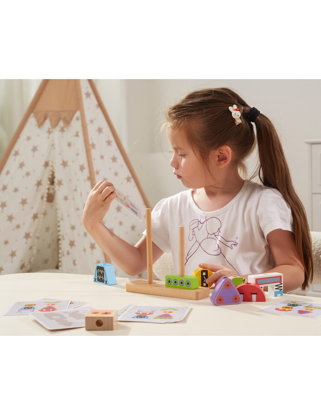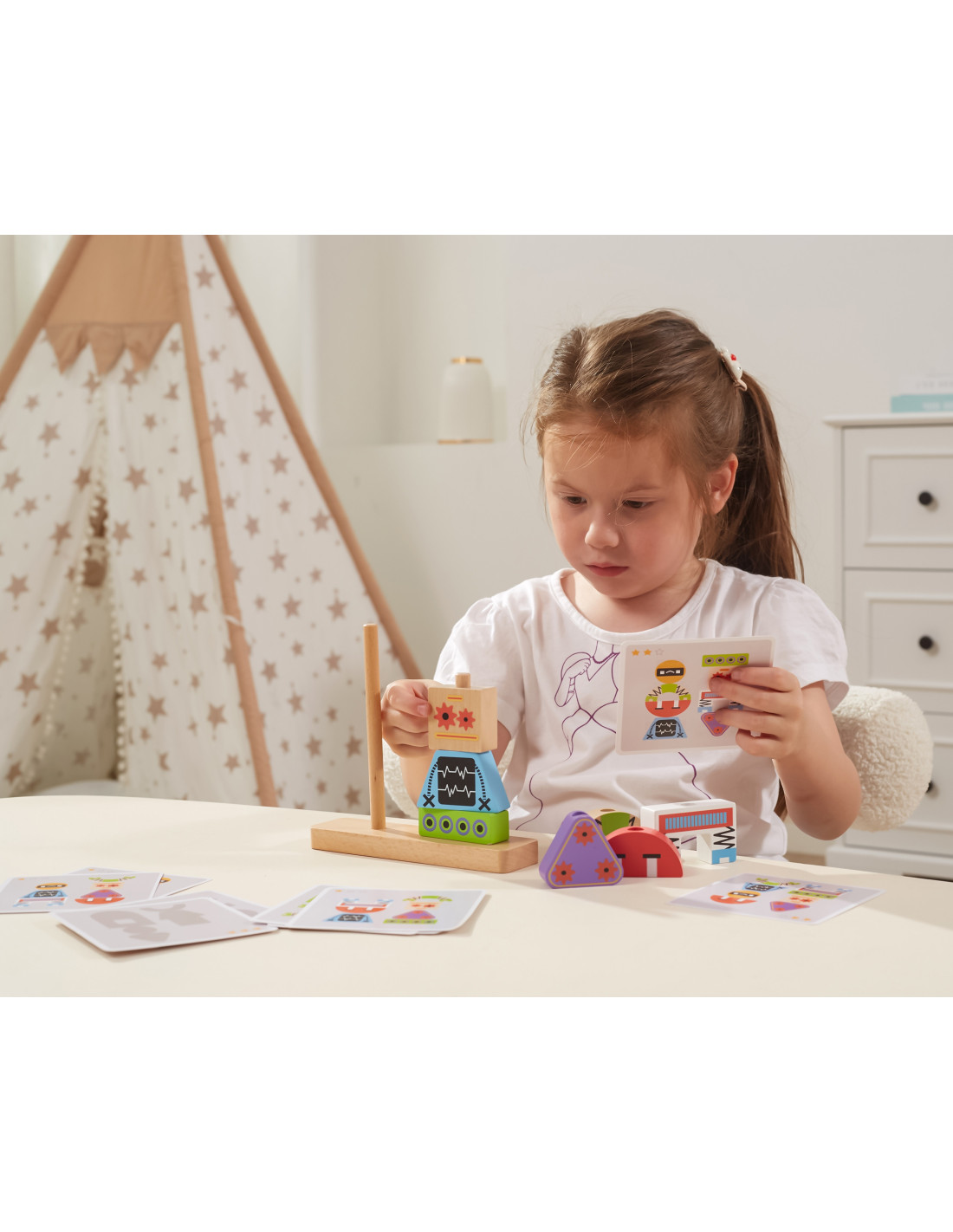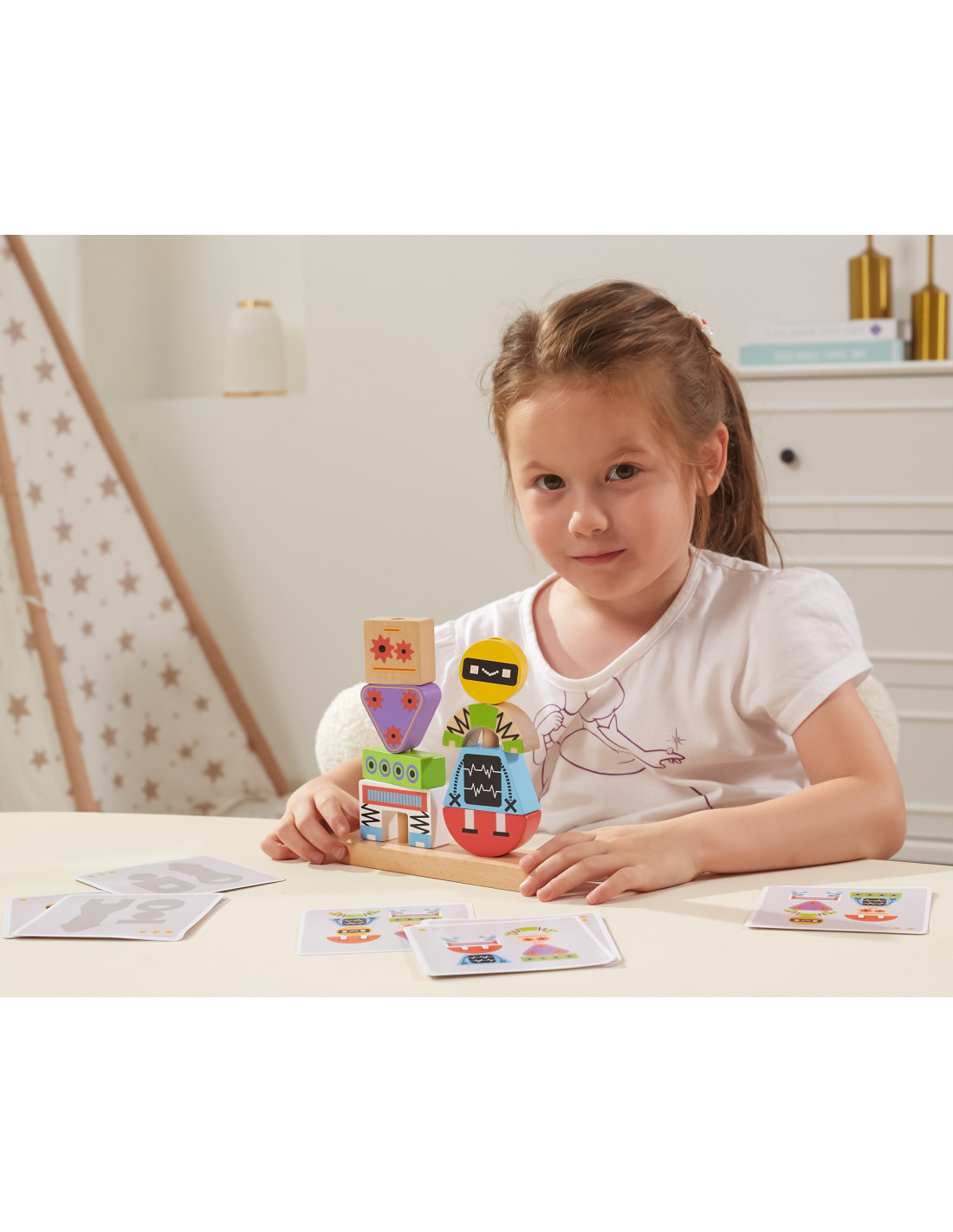 Viga robot stacking blocks are an excellent choice for children who want to develop their imagination and manual skills. This wonderful set of blocks is sure to encourage creative play and teach them shape and color recognition. Children will have the opportunity to create a variety of robot models using patterns and eight different blocks that easily stack on peg-based bases. The set also includes cards with various patterns , allowing children to assemble robots in various configurations and levels of difficulty. It's the perfect toy to stimulate imagination and develop creativity and manual skills.