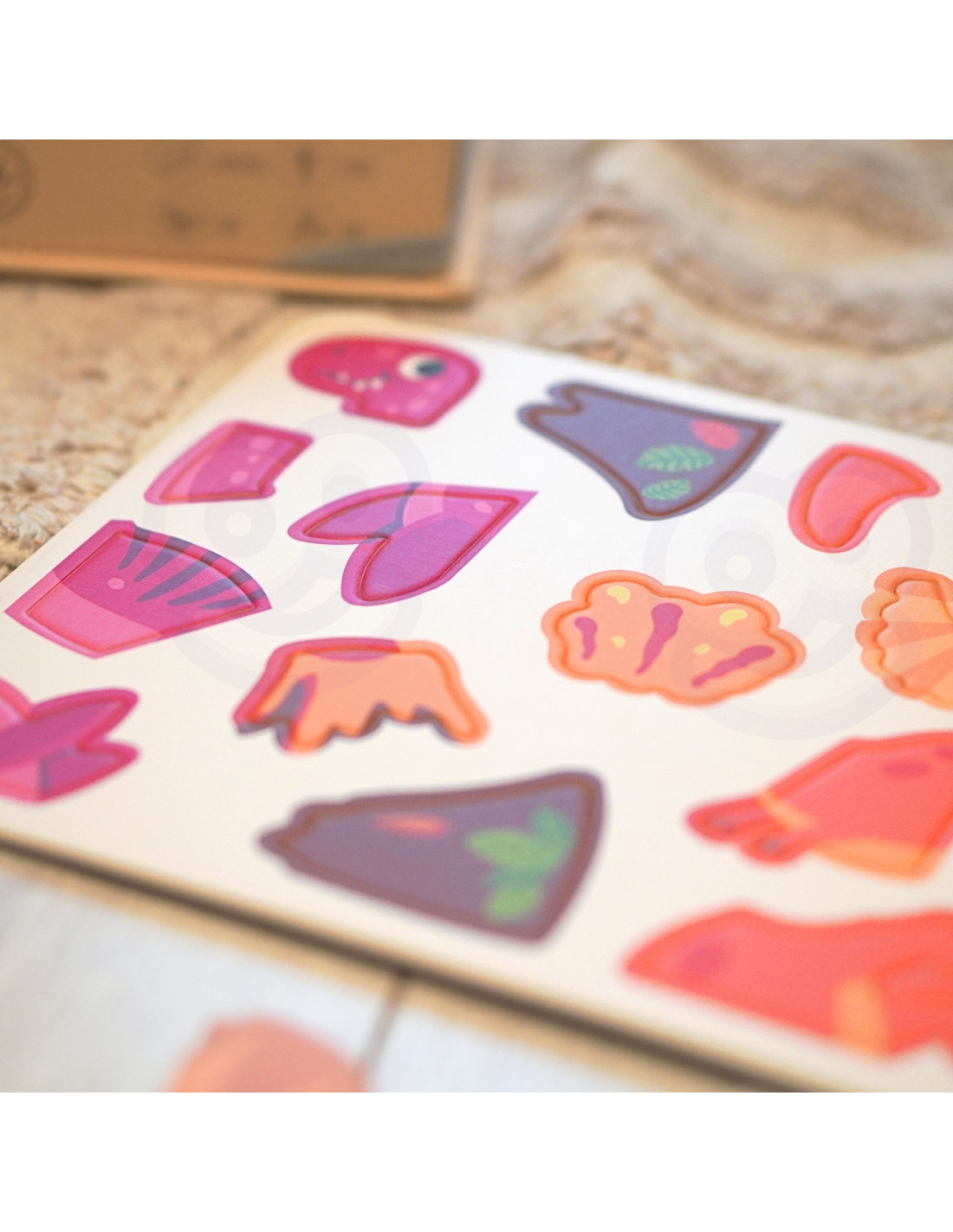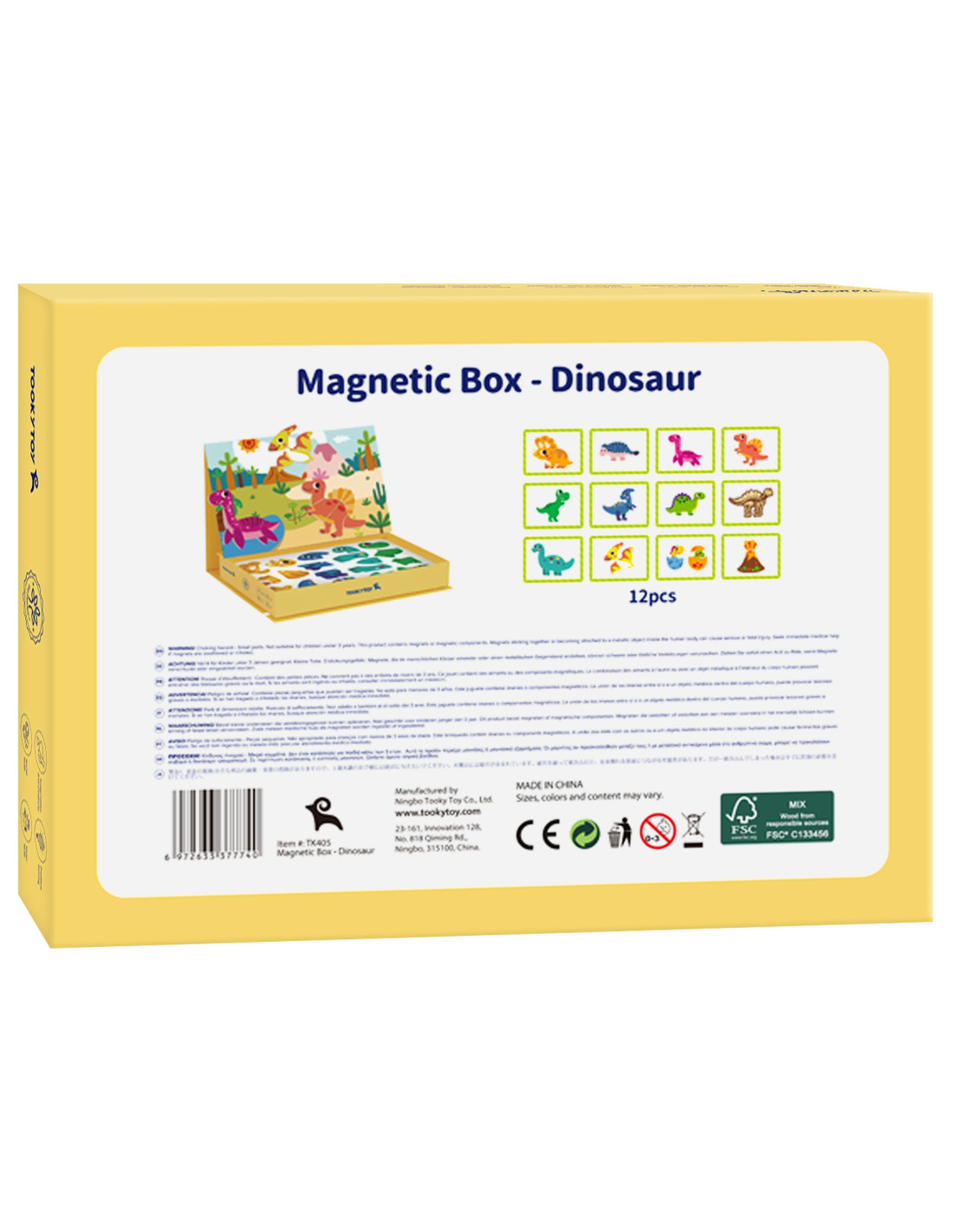 The TOOKY TOY Magnetic Puzzle is an engaging and imaginative set that takes young explorers on a prehistoric adventure. In this captivating box, children will discover a collection of 12 unique dinosaur designs, one volcano design, and an adorable pair of dinosaurs in eggs. Each design is cleverly divided into four or five magnetic puzzle pieces that easily snap together. The magic of this set lies in the magnetic stickers that easily stick to the included magnetic board, allowing children to easily assemble their own dinosaur masterpieces. As budding paleontologists, children can let their imaginations run wild by assembling magnetic dinosaur puzzles and creating their own ancient scenes. The tactile and interactive nature of this toy promotes problem-solving skills and the development of fine motor skills while sparking their imagination. The dinosaur-themed magnetic puzzle from Tooky Toy is not only a wonderful educational toy but also a source of endless fun. It encourages exploration, creativity and learning, making it the perfect addition to any young dinosaur lover's play repertoire.