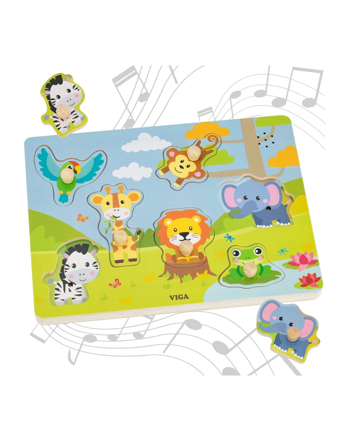 VIGA Exotic Animals Sound Puzzle helps you discover the fascinating world of jungle animals. This educational puzzle is a great way to develop your child's manual and cognitive skills. When you pick up and re-match a piece, your child will hear a realistic animal sound, reinforcing experiential learning. Perfect for little explorers who love interactive learning.