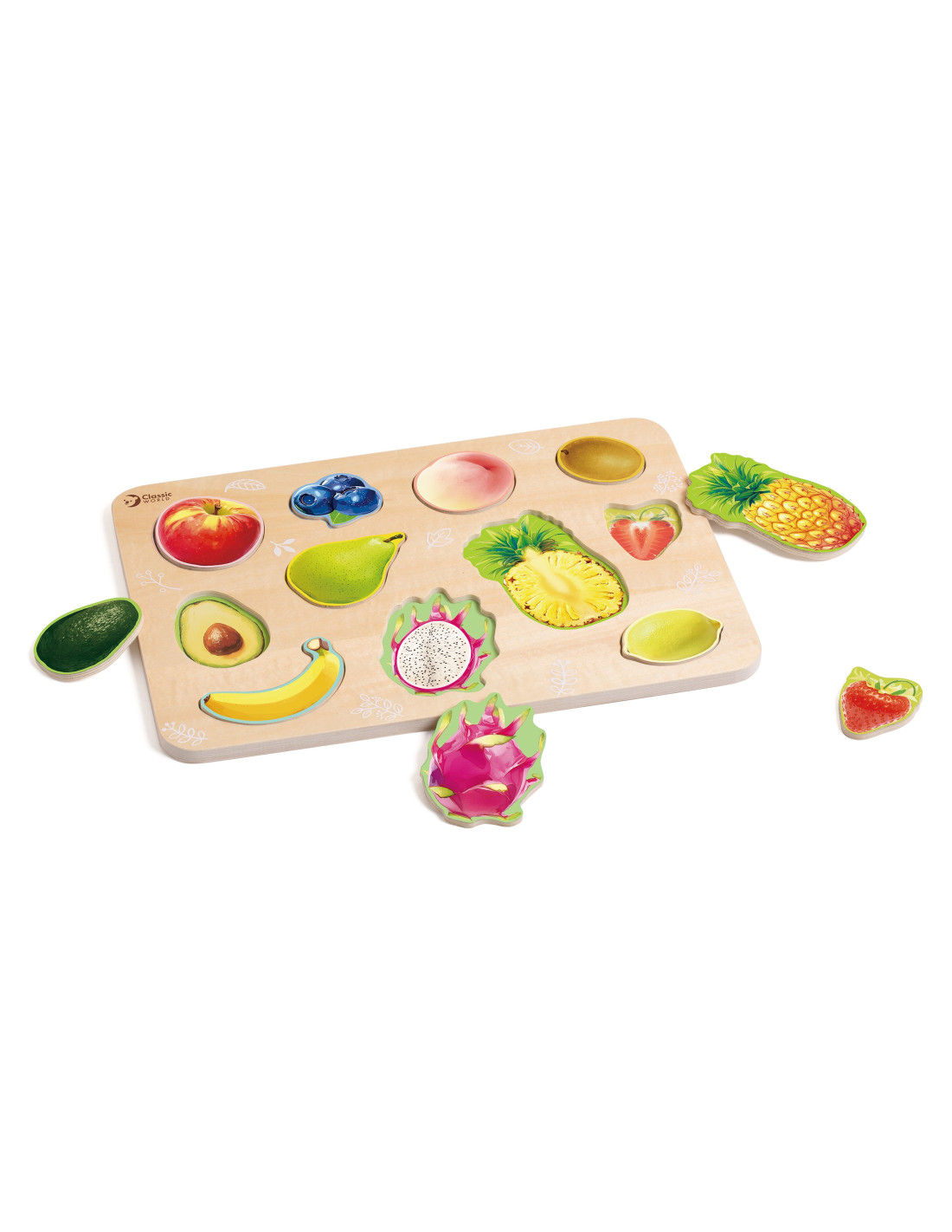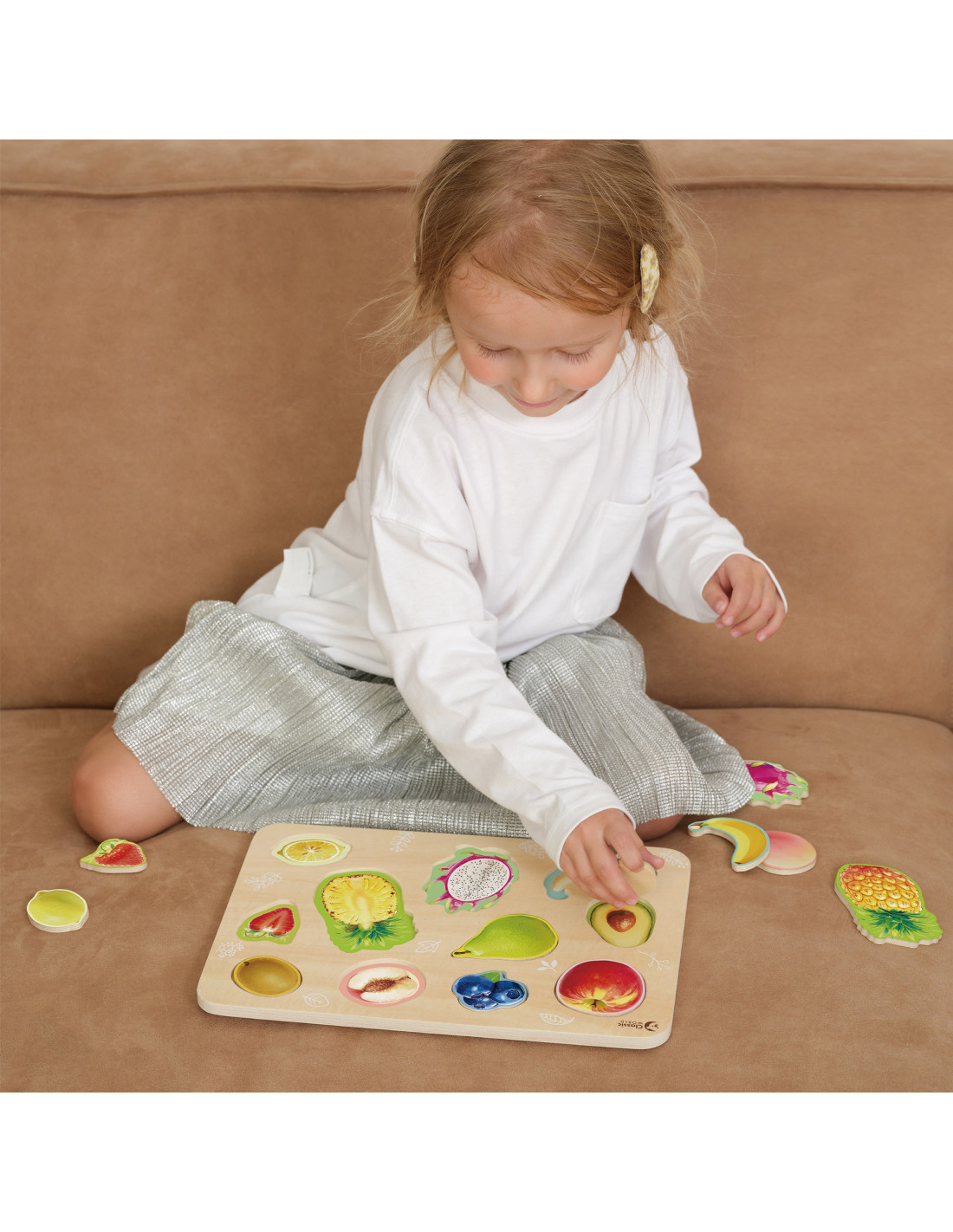 This colorful puzzle helps children develop shape and color recognition, logical thinking, and hand-eye coordination. Toddlers learn about various fruits by matching them to the appropriate spots on the board.