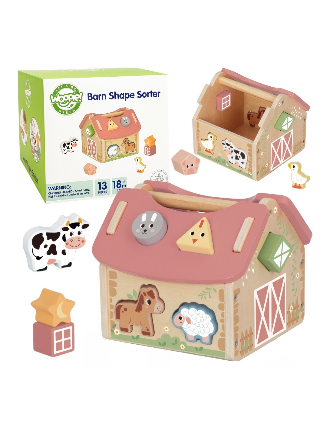 WOOPIE GREEN Wooden Farm Shape and Color Sorter 13 pcs.