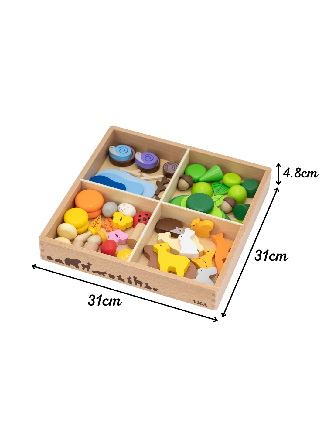 - - 58 wooden elements (animal figures and nature elements)