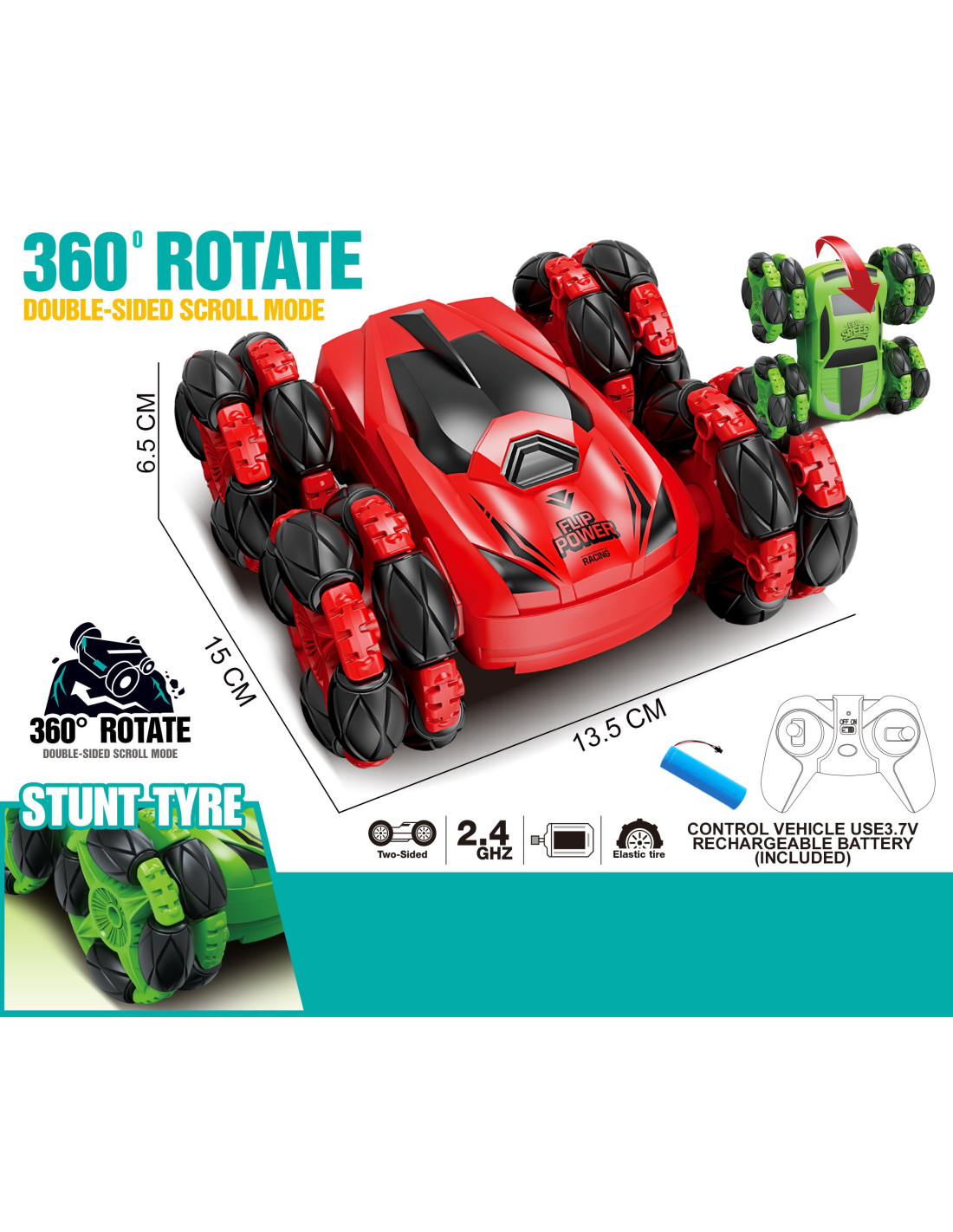 The remote-controlled stunt car from WOOPIE is great entertainment for your child for hours! Designed for challenging racetracks and stunts, this car is not only a great toy , but also a combination of functionality and attractive design, captivating both children and adults, ensuring excellent fun. Furthermore, the model is free of bumps and sharp edges , making it ideal for safe play for children.