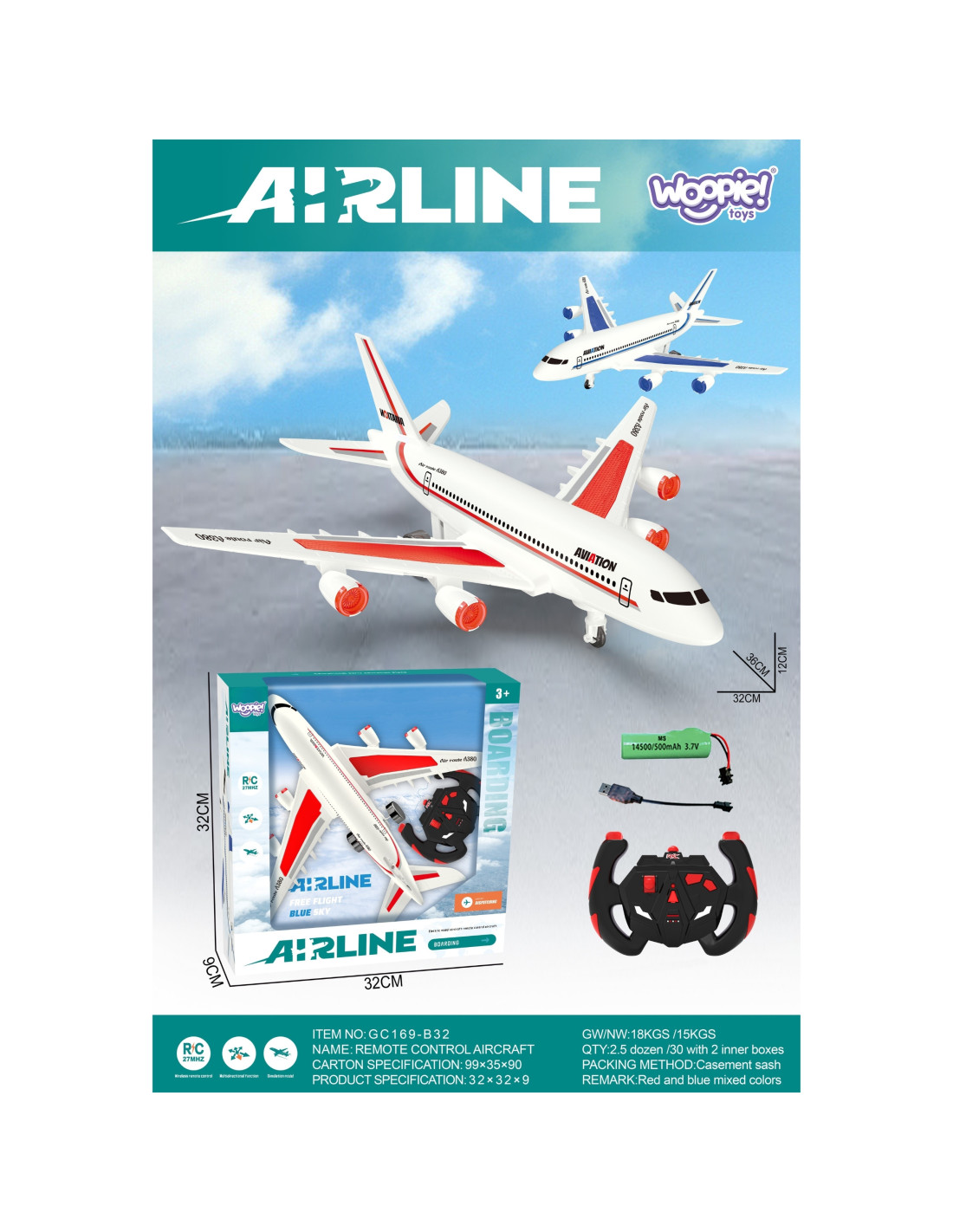 The AIRLINE Remote-Controlled Passenger Plane takes piloting to the next level. Crafted from high-quality materials and featuring a striking red and white striped design, it's sure to provide an unforgettable play experience.