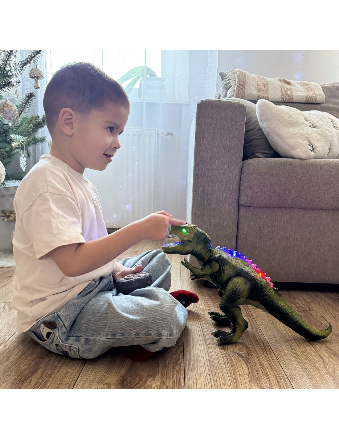 Discover the prehistoric world with the amazing, remote-controlled Tyrannosaurus Rex from Woopie ! This realistically reproduced dinosaur will transport any child to the Jurassic era. The T-Rex moves, makes roaring sounds , and features impressive lighting . The set comes with an easy-to-use remote control that allows for forward movement, movement, and a "dancing" function. Importantly, the remote control operates on different frequencies , allowing three people to play simultaneously without interference! It's the perfect gift for any little dinosaur fan.