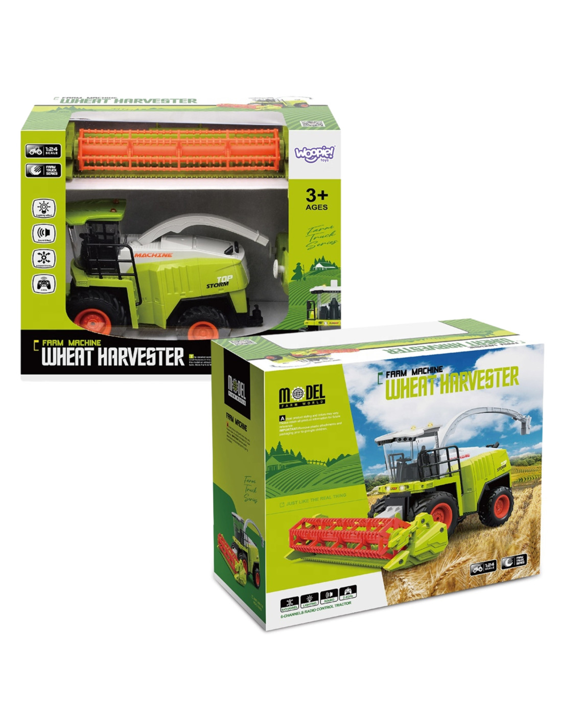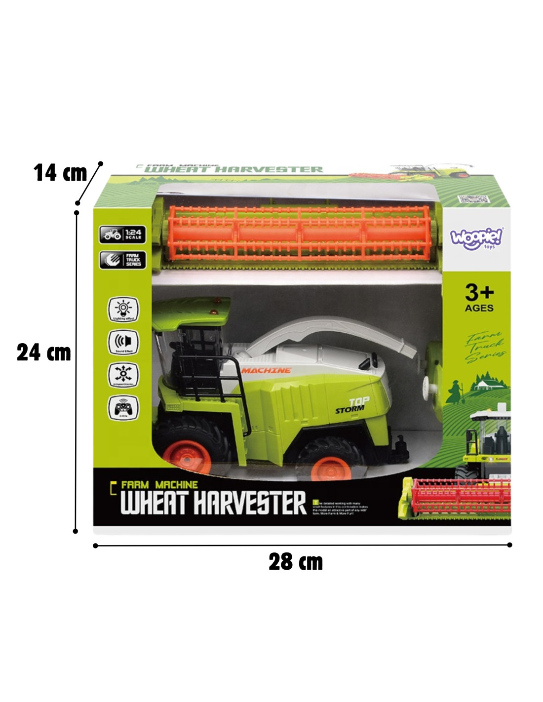 The Woopie remote-controlled combine harvester is an impressive vehicle that transforms a room into a field full of adventure and realistic harvesting action. Large wheels, a moving harvester, and a rotating chaff discharger encourage farm-style scenarios, sparking imaginations and providing the immense satisfaction of operating the machine like a real operator.